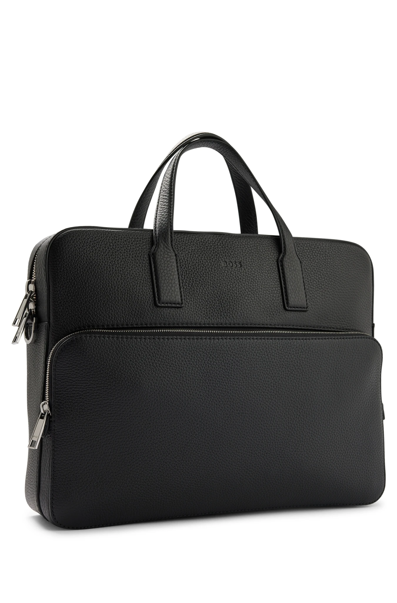 Elegante BOSS Aktentasche mit Logo-Prägung. Das Herren-Accessoire ist aus weichem italienischem Leder mit glatter Haptik und natürlicher Narbung gefertigt. Dank der durchdachten Aufteilung ist die Tasche der optimale Begleiter im Office. Dank des abnehmbaren Schulterriemens kann der Style auch als Business-Tasche getragen werden. Für unsere RESPONSIBLE Produkte verwenden wir immer mindestens 60 % nachhaltigere Rohmaterialien. Mindestens 60 % des Leders für dieses Produkt stammen aus zertifizierten Gerbereien, die mit umweltschonenden Methoden arbeiten, um die Auswirkungen auf den Planeten zu reduzieren. Mit dem Kauf dieses Produktes unterstützen Sie die nachhaltigere Lederherstellung durch die Leather Working Group (LWG). Wir verwenden nur Leder, das als Nebenprodukt in der Lebensmittelbranche anfällt.