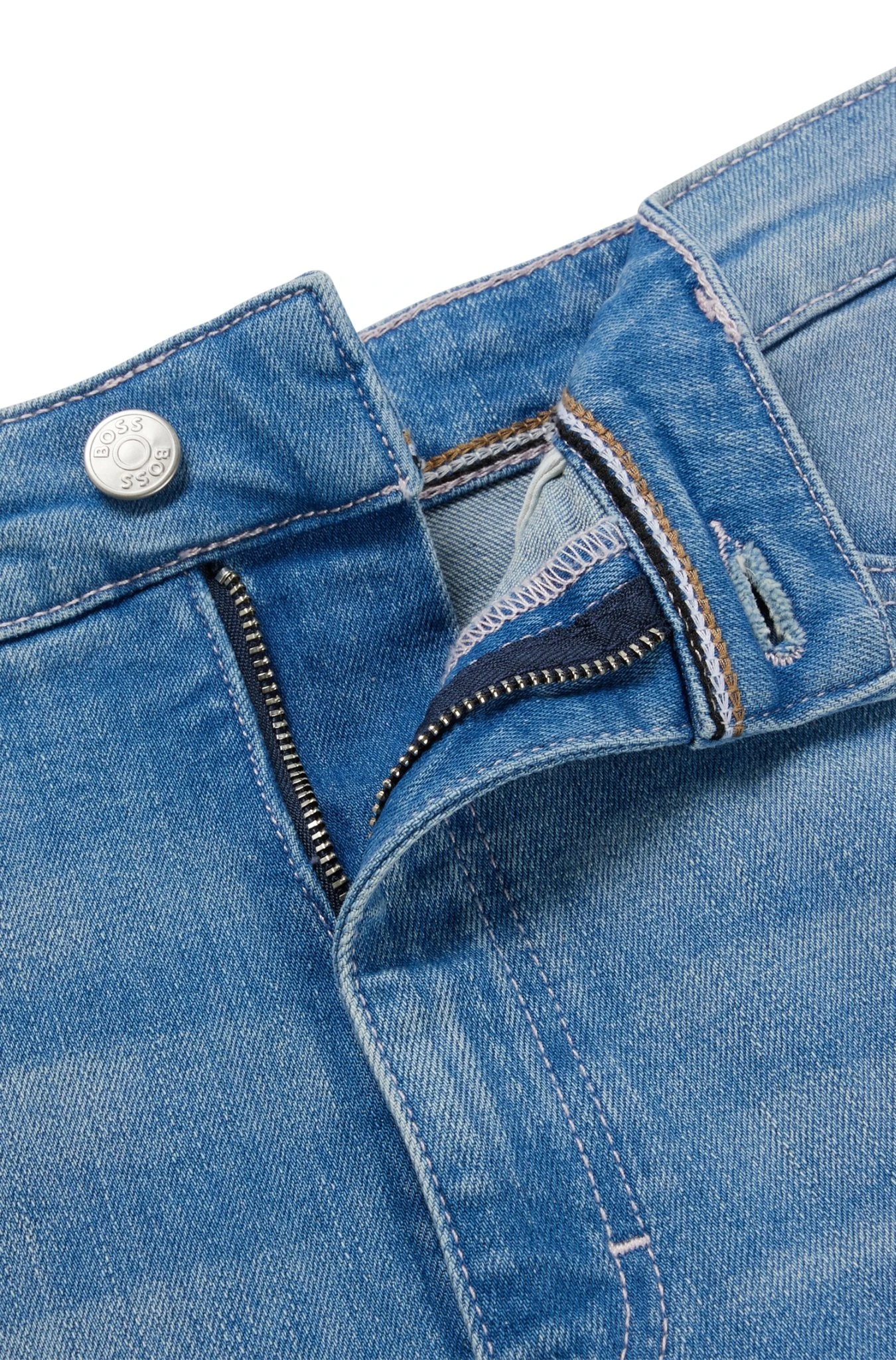 Legere BOSS Jeans mit zeitgemäßer Silhouette. Die gerade geschnittene Damen-Hose mit hohem Bund und weitem Beinverlauf ist aus bequemem Stretch-Denim in einem frischen Blauton gefertigt, der ein angenehmes Tragegefühl verspricht. Für unsere RESPONSIBLE Produkte verwenden wir immer mindestens 60 % nachhaltigere Rohmaterialien. Dieses Kleidungsstück ist zu mindestens 60 % aus zertifizierter Bio-Baumwolle gefertigt. Bio-Baumwolle wird nur mit natürlich vorkommenden Substanzen und ohne gentechnisch verändertes Saatgut angebaut. In der biologischen Landwirtschaft werden zur Schädlings- und Krankheitsbekämpfung anstelle von Chemikalien natürliche Maßnahmen, wie Wechselwirtschaft und Kompostieren, eingesetzt. Das Kleidungsstück besteht zum Teil aus zertifizierter recycelter Baumwolle. Die größte Menge an recycelter Baumwolle entsteht durch Abfälle bei der Produktion, also beispielsweise durch Reste vom Zuschnitt. Wir verwenden nur Rohstoffe aus einer nachverfolgbaren Produktkette, um sicherzustellen, dass es sich um zertifizierte recycelte Baumwolle handelt.