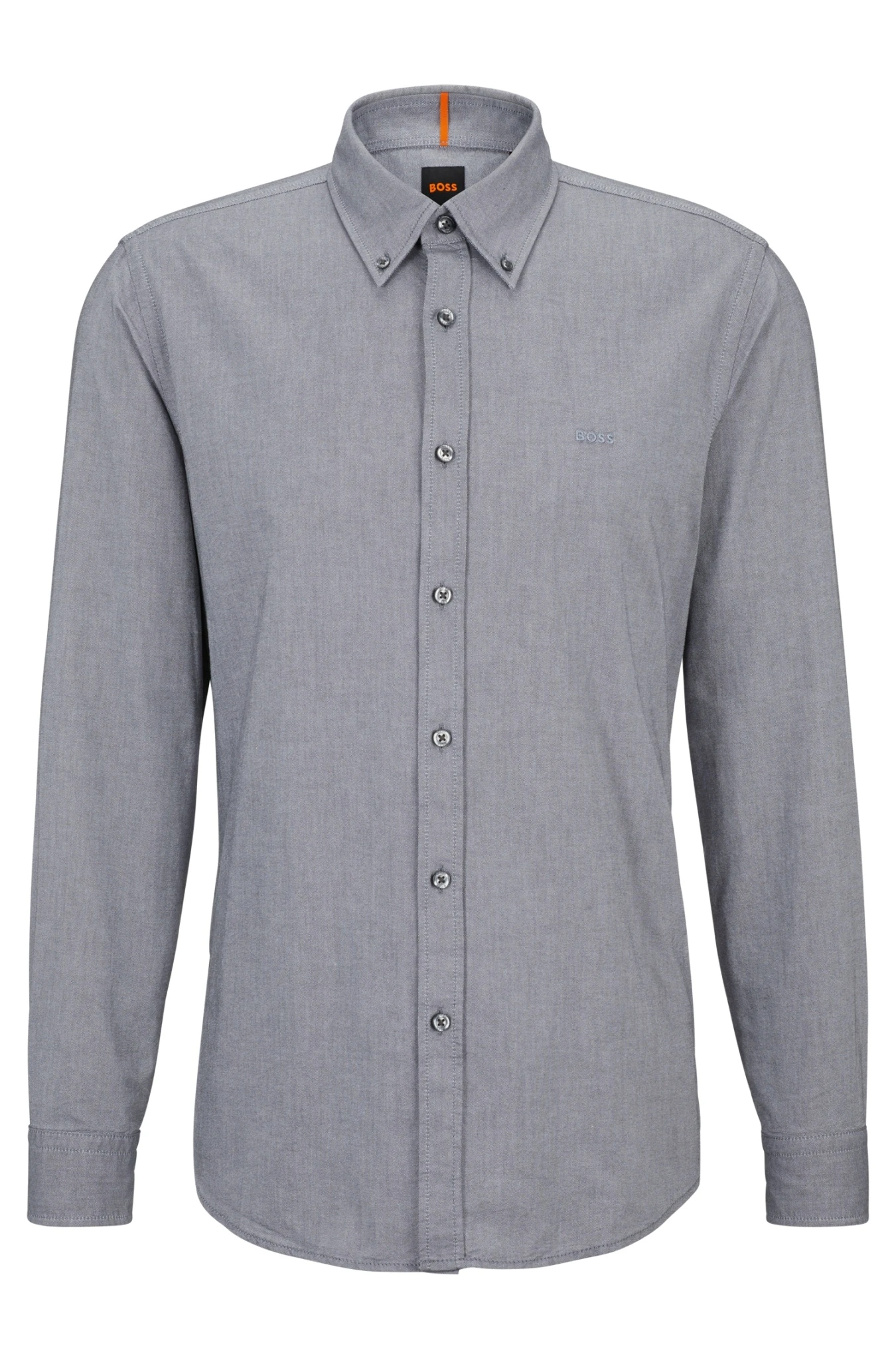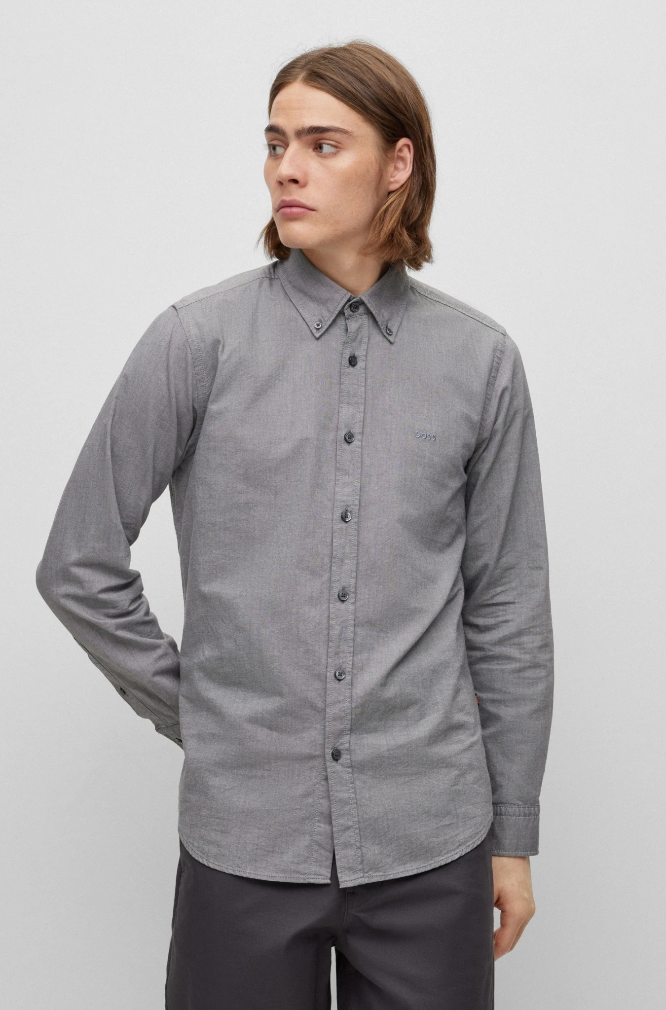 Gerade geschnittenes BOSS Hemd aus Oxford-Baumwolle mit Button-Down-Kragen und Logo-Stickerei auf der Brust. Für unsere RESPONSIBLE Produkte verwenden wir immer mindestens 60 % nachhaltigere Rohmaterialien. Dieses Produkt wird mit zertifizierter Bio-Baumwolle gefertigt. Beim Bio-Baumwollanbau wird auf den Einsatz von Kunstdünger, Pestiziden und genverändertem Saatgut verzichtet.