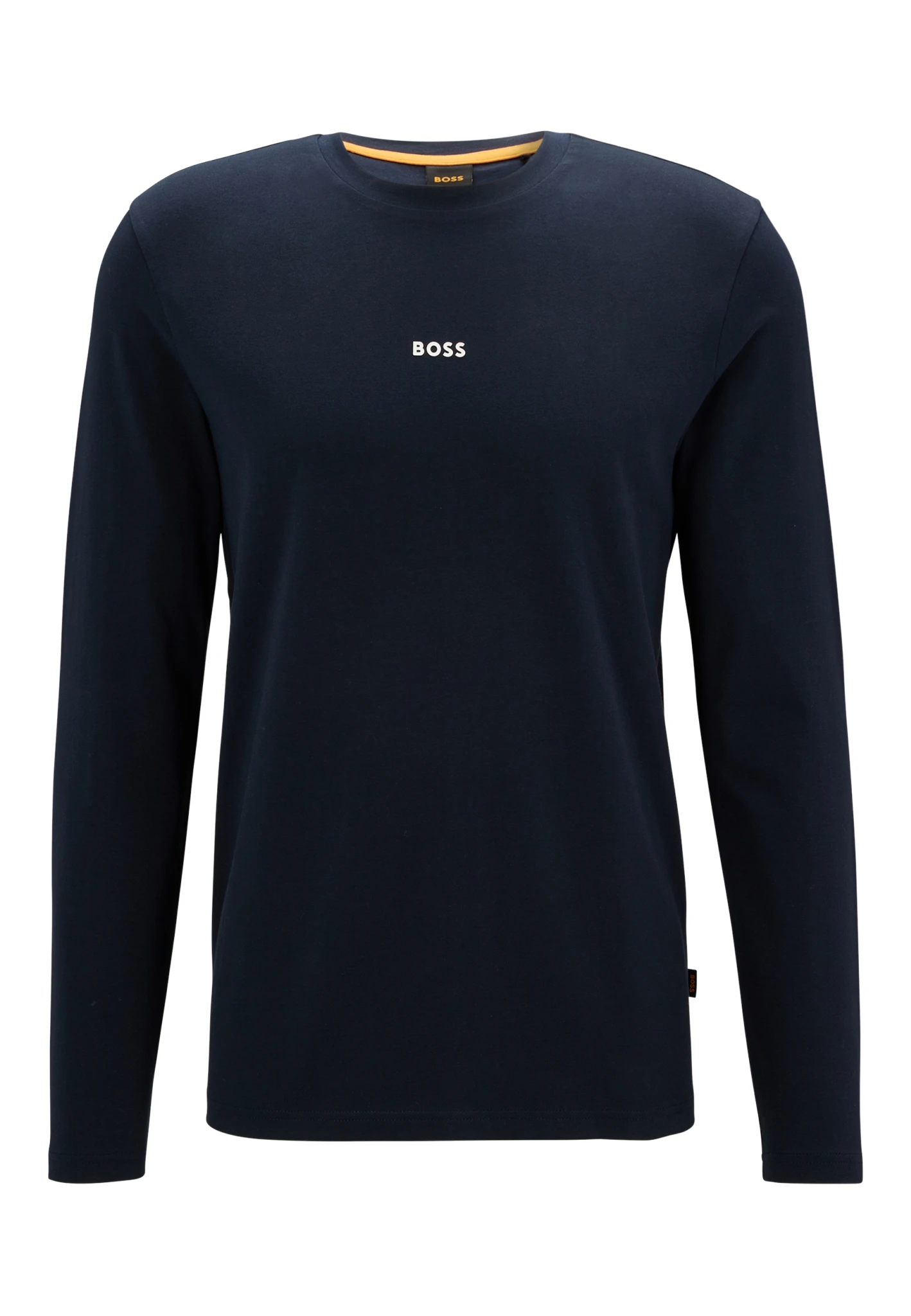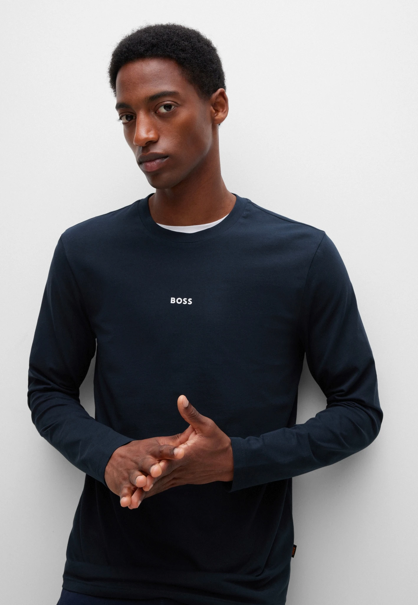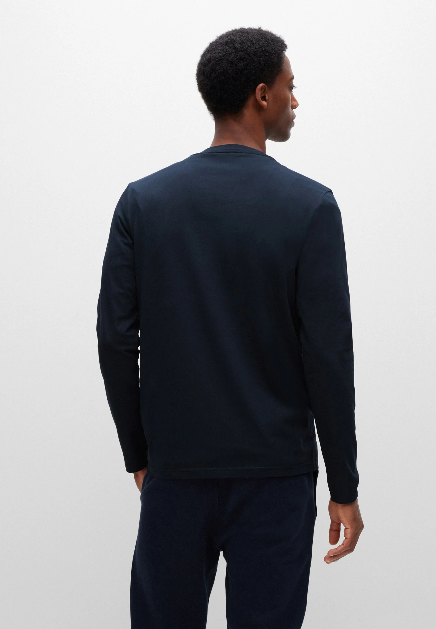 Gerade geschnittenes BOSS Longsleeve. Das zeitgemäße Herren-Shirt aus elastischer Baumwolle überzeugt mit einem gummierten Logo-Print in Kontrastfarbe mit sieben Schichten. Für unsere RESPONSIBLE Produkte verwenden wir immer mindestens 60 % nachhaltigere Rohmaterialien. Mit dem Kauf dieses Produkts leisten Sie einen wichtigen Beitrag für die Zukunft Afrikas sowie den Schutz unserer Natur. Cotton made in Africa ist eine Initiative der Aid by Trade Foundation. Die Baumwolle wird ausschließlich durch Regen bewässert, sodass kein zusätzliches Wasser verbraucht wird. Die Initiative unterstützt kleine Baumwollbauern und setzt sich für die Gleichberechtigung der Geschlechter, faire Arbeitsbedingungen und den Schutz der Kinderrechte ein. Es werden keine genetisch veränderten Organismen eingesetzt und alle Teilnehmenden erhalten Schulungen zu klimafreundlichen Anbaumethoden und biologischer Landwirtschaft.