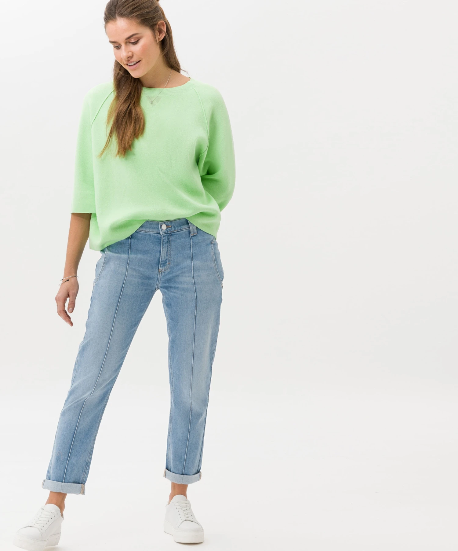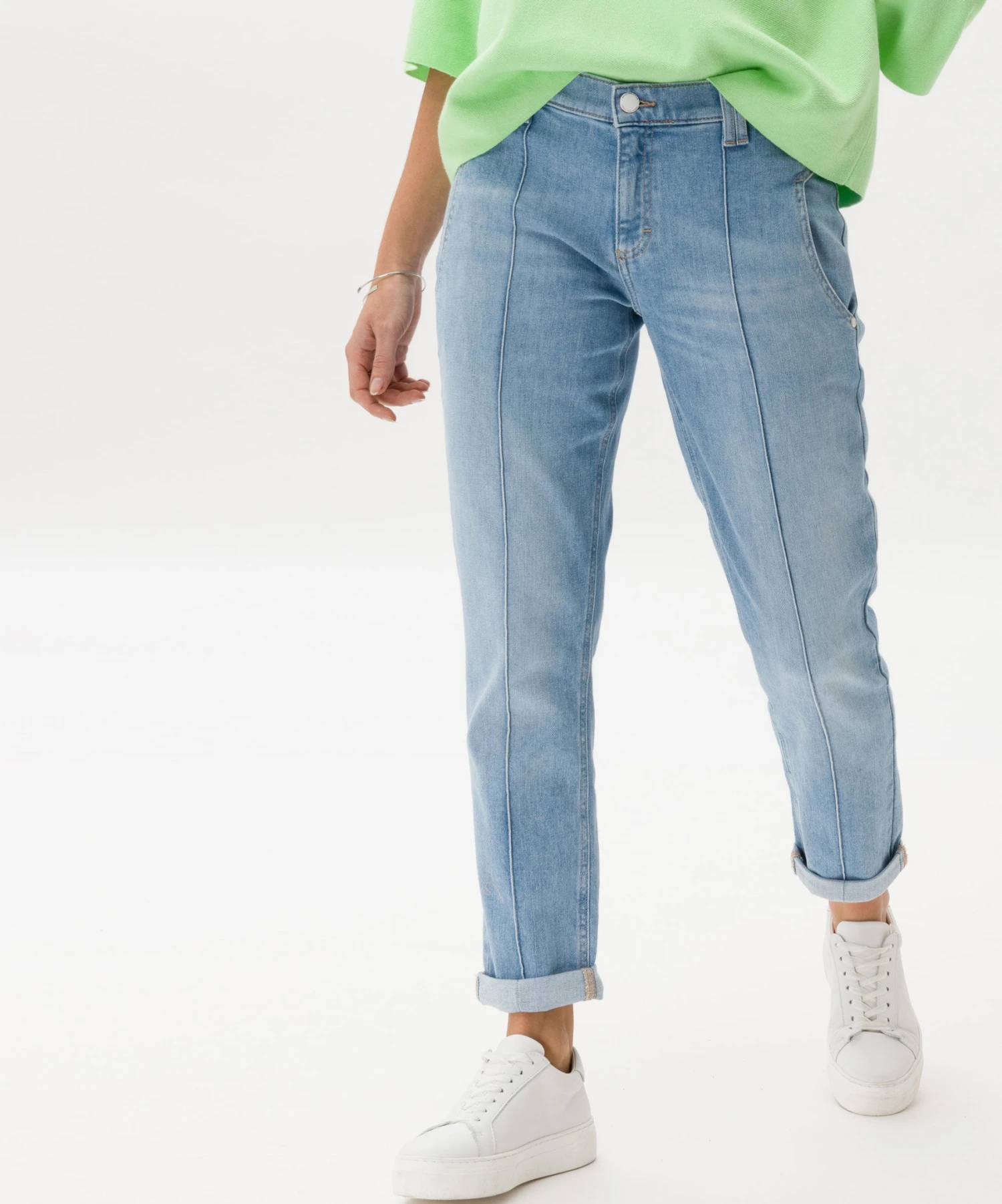 Für Damen ist der Style MERRIT S ein Trend-Piece. Runden Sie Ihren Auftritt modern und smart ab und kombinieren Sie diese Hose mit Sneakern oder Boots. Die Relaxed Fit Damenhose sitzt lässig mit regulärer Bundhöhe und konischem Schnitt an Gesäß und Beinen. Eine typische Optik erhält die Hose insbesondere durch das aufwendige Taschendesign. Zusätzlich ist sie mit Teilungsnähten und Biese gestaltet. Der nachhaltige, unempfindliche und hautfreundliche Baumwollmix bietet außerdem bei dieser Five-Pocket-Jeans ein sehr gutes Tragegefühl.