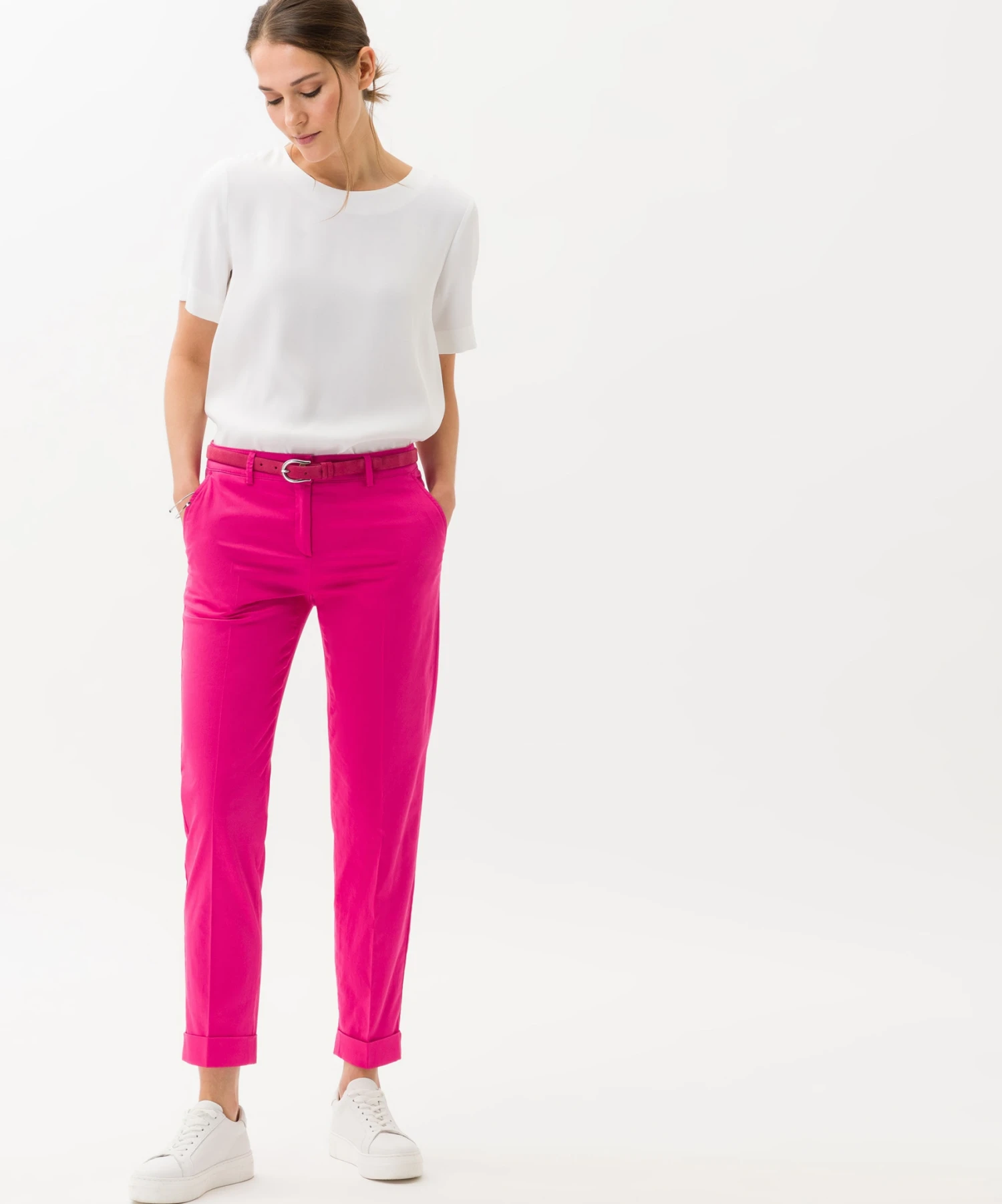 Für Damen ist der Style MARON S ein Must Have. In Kombination mit Pullis und flachen Schuhen vervollständigt die zeitlose 7/8 Chino legere Looks ideal. Die Slim Fit Damenhose mit regulärer Taille setzt dank konischem Schnitt Beine und Po optimal in Szene. Eine bewährte Optik erhält die Hose insbesondere durch das aufwendige Taschendesign. Zusätzlich ist sie mit Bügelbruch und Saumaufschlag gestaltet. Mit Ultralight genießen Sie besondere Leichtigkeit. Durch die Symbiose aus Oberstoff und Verarbeitung ist eine superleichte, softe und strapazierfähige Qualität entstanden. Der nachhaltige, pflegeleichte und hautsympathische Baumwollmix bietet zudem bei dieser Chino ein einwandfreies Tragegefühl.
