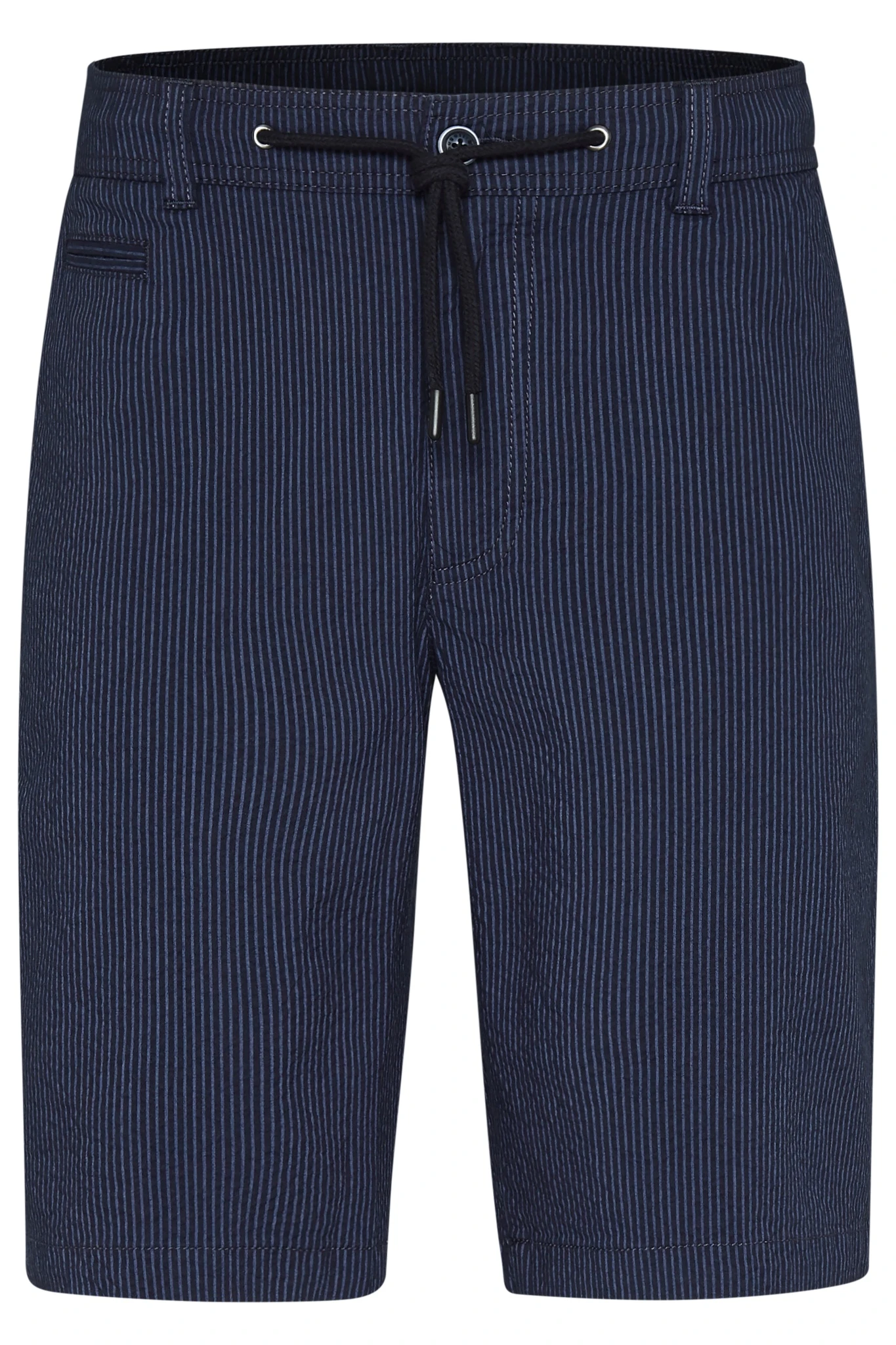 Moderne Tunnelzug-Bermuda mit einem Streifenmuster. Vor allem Polo-Shirts und T-Shirts erscheinen in Kombination mit dieser Short deutlich belebter und moderner.