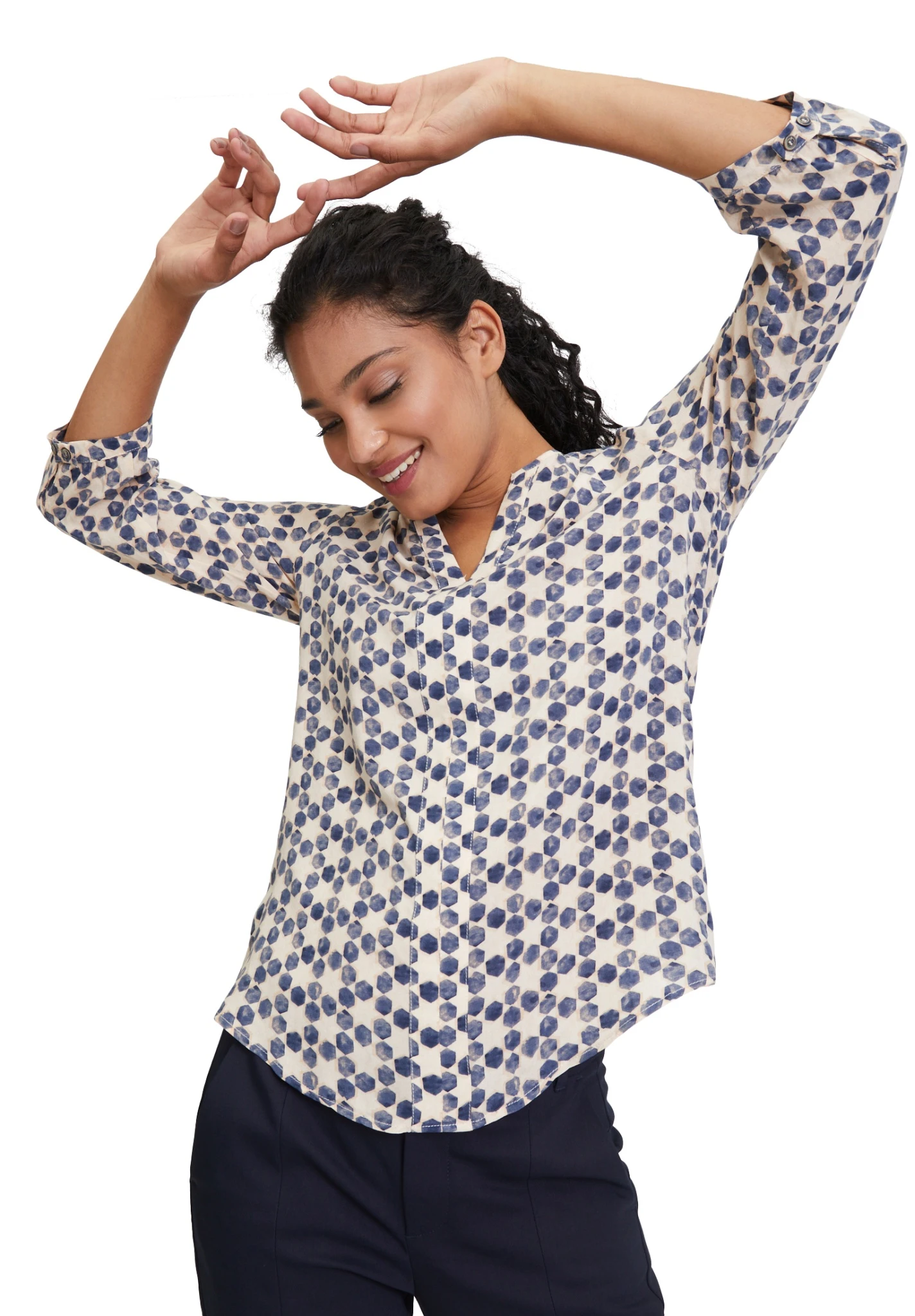 - Ärmel: 3/4 Arm, Ärmelaufschlag