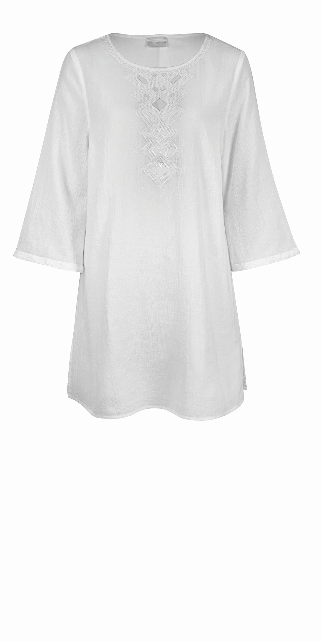 Bestickte Tunika in frischem Weiß, sattem Acqua oder kräftigem Türkis.