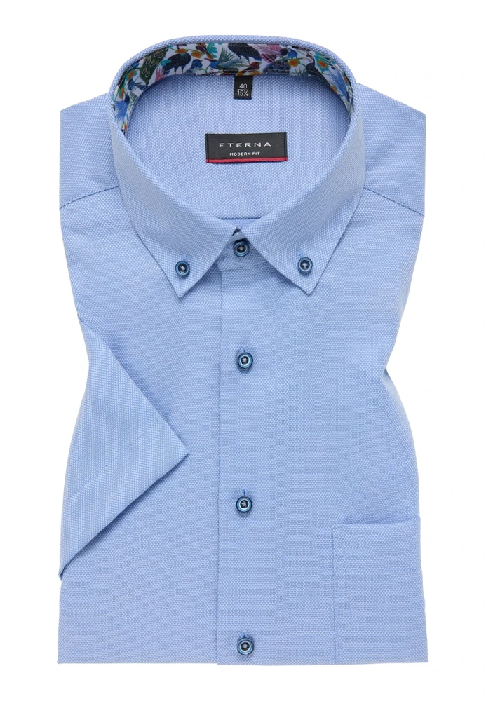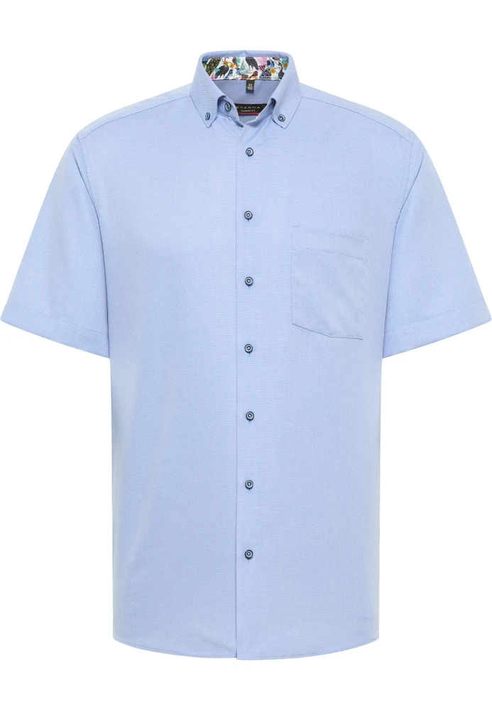 Dieses kurzärmelige Strukturhemd ist ein alltagstaugliches Hemd, das Sie sehr gut auch in der Freizeit tragen können. Der Modern Button-Down-Kragen und die schöne Strukturierung machen dieses Hemd (mit Brusttasche) zum absoluten Lieblingsstück. Der leicht taillierte Schnitt dieses MODERN FIT Hemdes spricht alle Männer an, die den klassischen Look etwas modischer interpretieren wollen. Das Uni-Muster mit Patch ist eine stilvolle Ergänzung. Gefertigt ist dieses Kurzarmhemd aus 100% feinster Baumwolle (bügelfrei), was Ihnen einen erstklassigen Tragekomfort garantiert. Heute noch online bestellen!