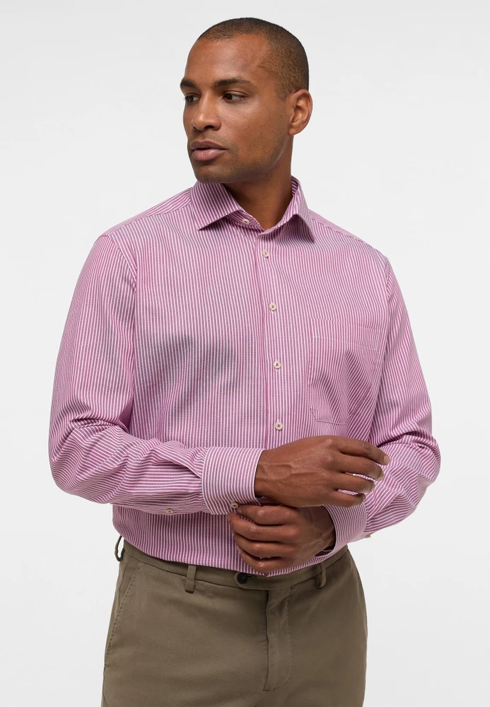 Ein gestreiftes Hemd ist das Herzstück der Herrengarderobe. Hier bieten wir ein gestreiftes Twill-Hemd mit Classic Kent-Kragen und Brusttasche an. Alle, die es gerne schick, aber nicht zu einengend mögen, werden den COMFORT FIT schätzen. Durch das softe Twill-Gewebe aus reiner Baumwolle überzeugt dieses Hemd mit hochwertigem Tragekomfort. Es ist bügelfrei und wird Sie mit Pflegeleichtigkeit überzeugen. Dieses Streifen-Hemd mit abgerundetem Saum ist ein absoluter Klassiker – gleich heute noch online bestellen!