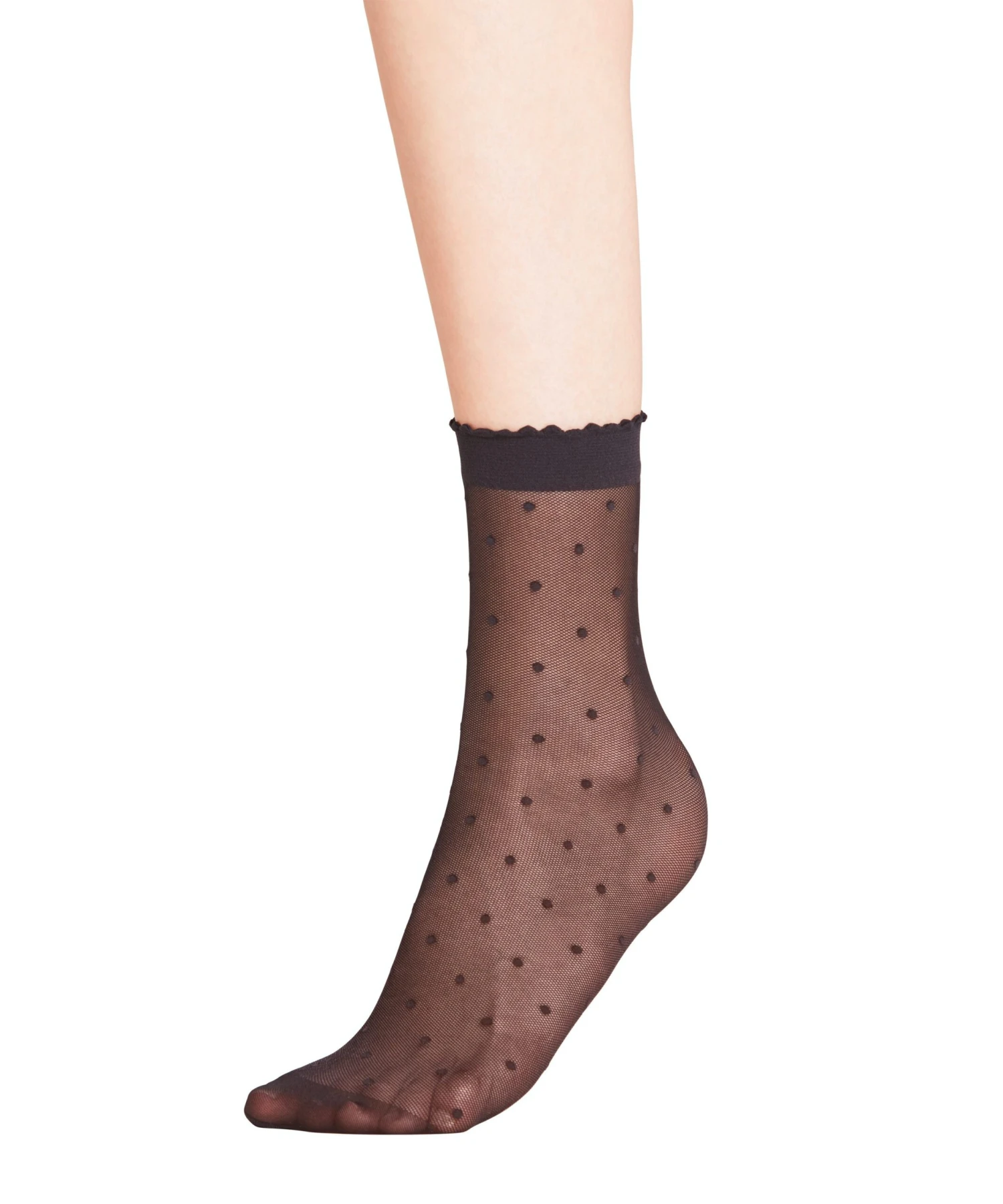 Pünktchen sind auch diese Saison wieder ein absolutes Highlight. Dieses transparente Söckchen bedient diesen Trend mit seinen modernen Dots. Ein Klassiker, der perfekt zu jedem Outfit und zu jeder Gelegenheit passt. Durch die perfekte Passform bietet dieses Söckchen der Trägerin den höchsten Komfort.