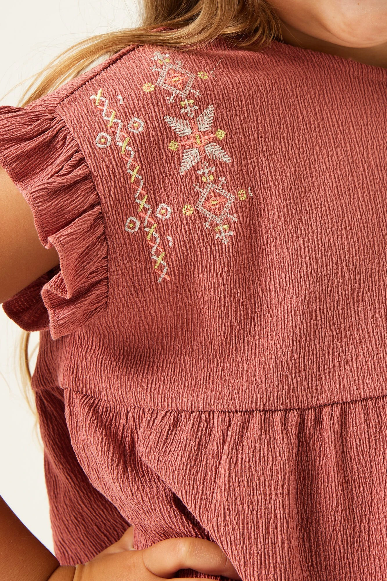- Stickereien an Schulter