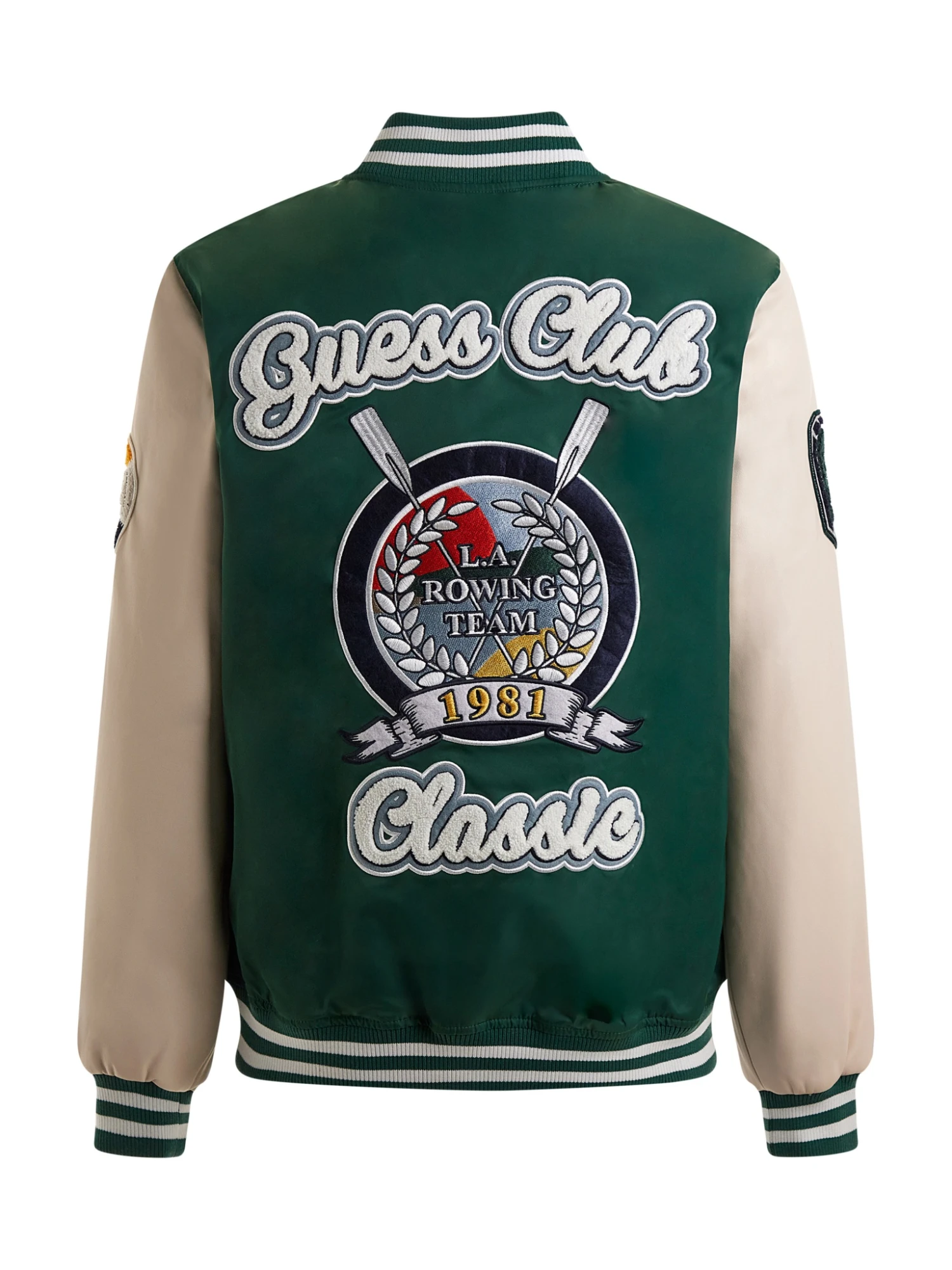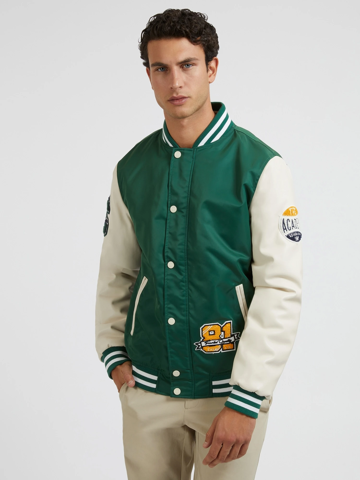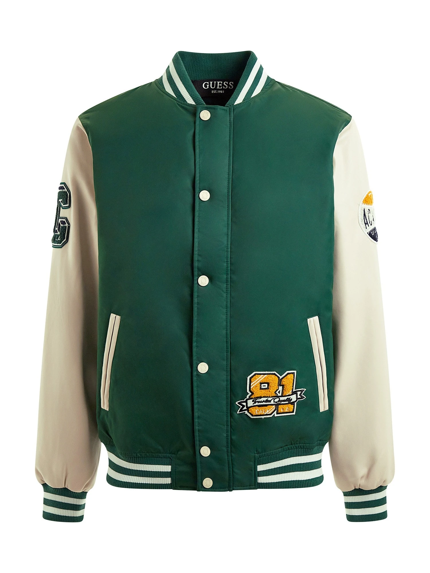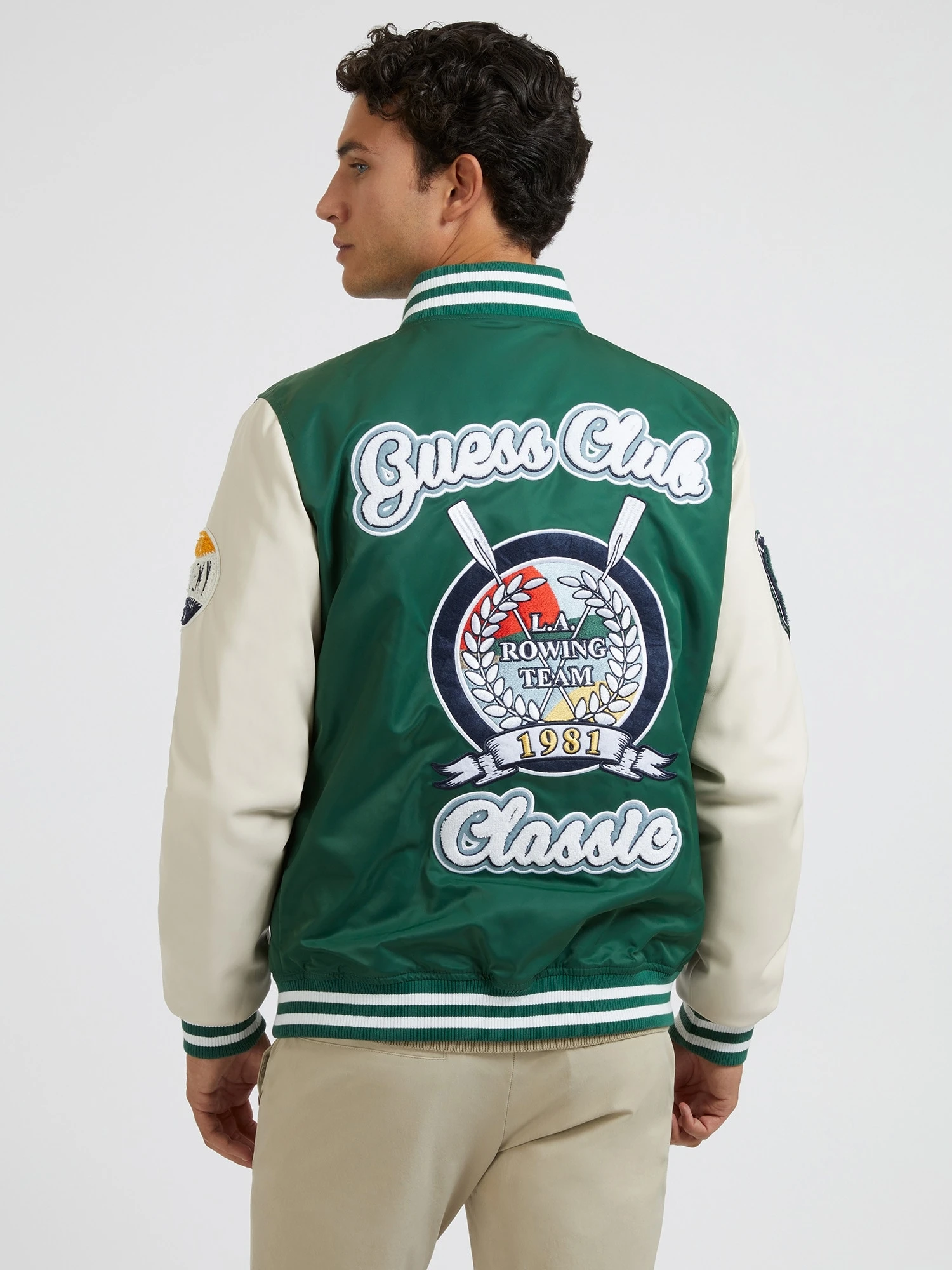 - Patches auf Jacke verteilt