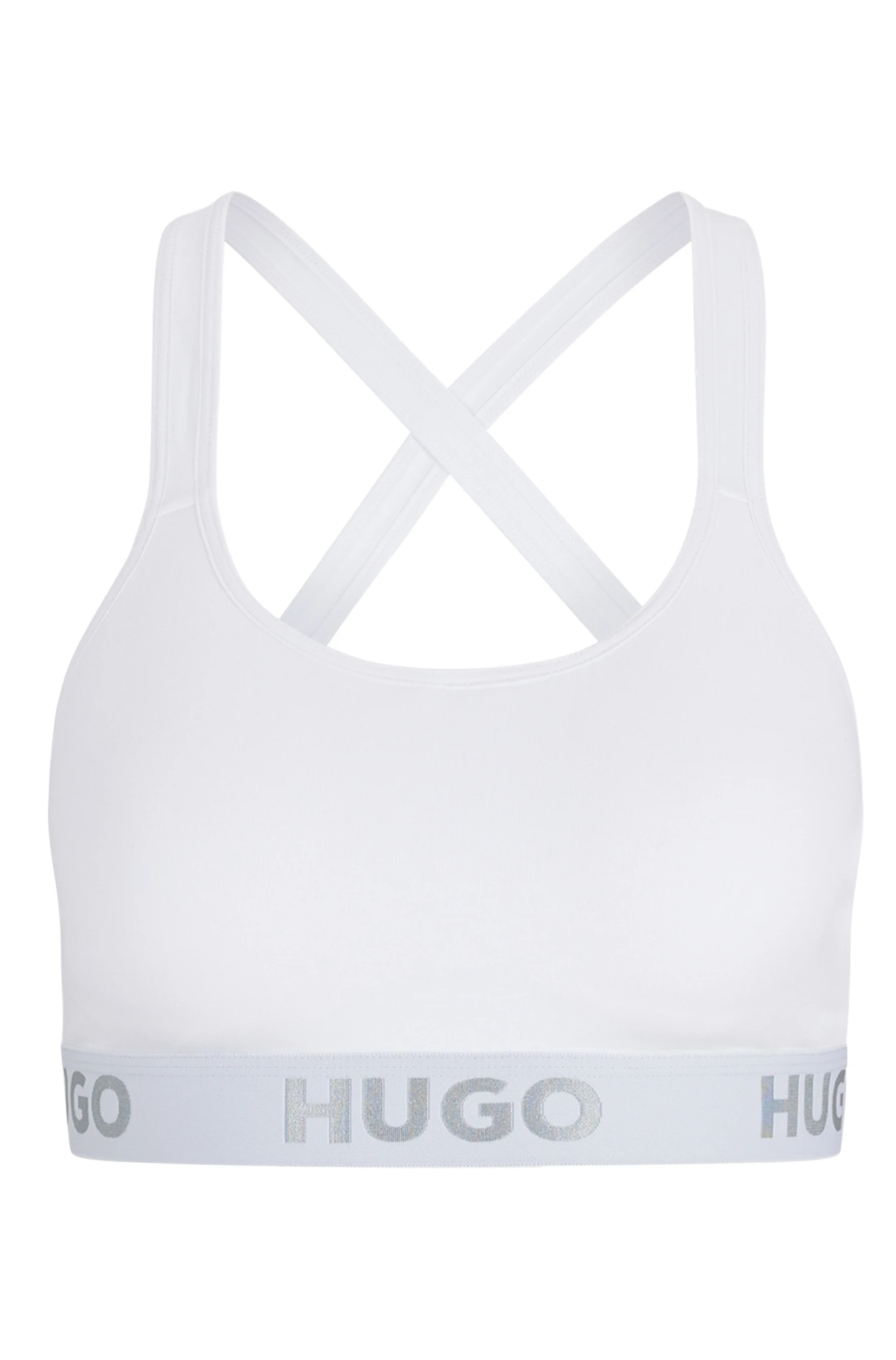 Wattiertes HUGO Bralette. Das Bralette mit wiederholtem HUGO Logo auf dem bequemen Band ist aus Baumwolle mit Elasthan-Anteil gefertigt. Auf der Rückseite befinden sich feste Riemen, die sich überkreuzen. Für unsere RESPONSIBLE Produkte verwenden wir immer mindestens 60 % nachhaltigere Rohmaterialien. Dieses Kleidungsstück ist zu mindestens 60 % aus zertifizierter Bio-Baumwolle gefertigt. Bio-Baumwolle wird nur mit natürlich vorkommenden Substanzen und ohne gentechnisch verändertes Saatgut angebaut. In der biologischen Landwirtschaft werden zur Schädlings- und Krankheitsbekämpfung anstelle von Chemikalien natürliche Maßnahmen, wie Wechselwirtschaft und Kompostieren, eingesetzt.