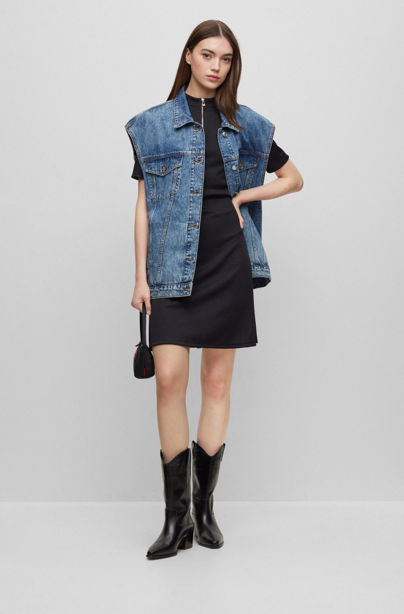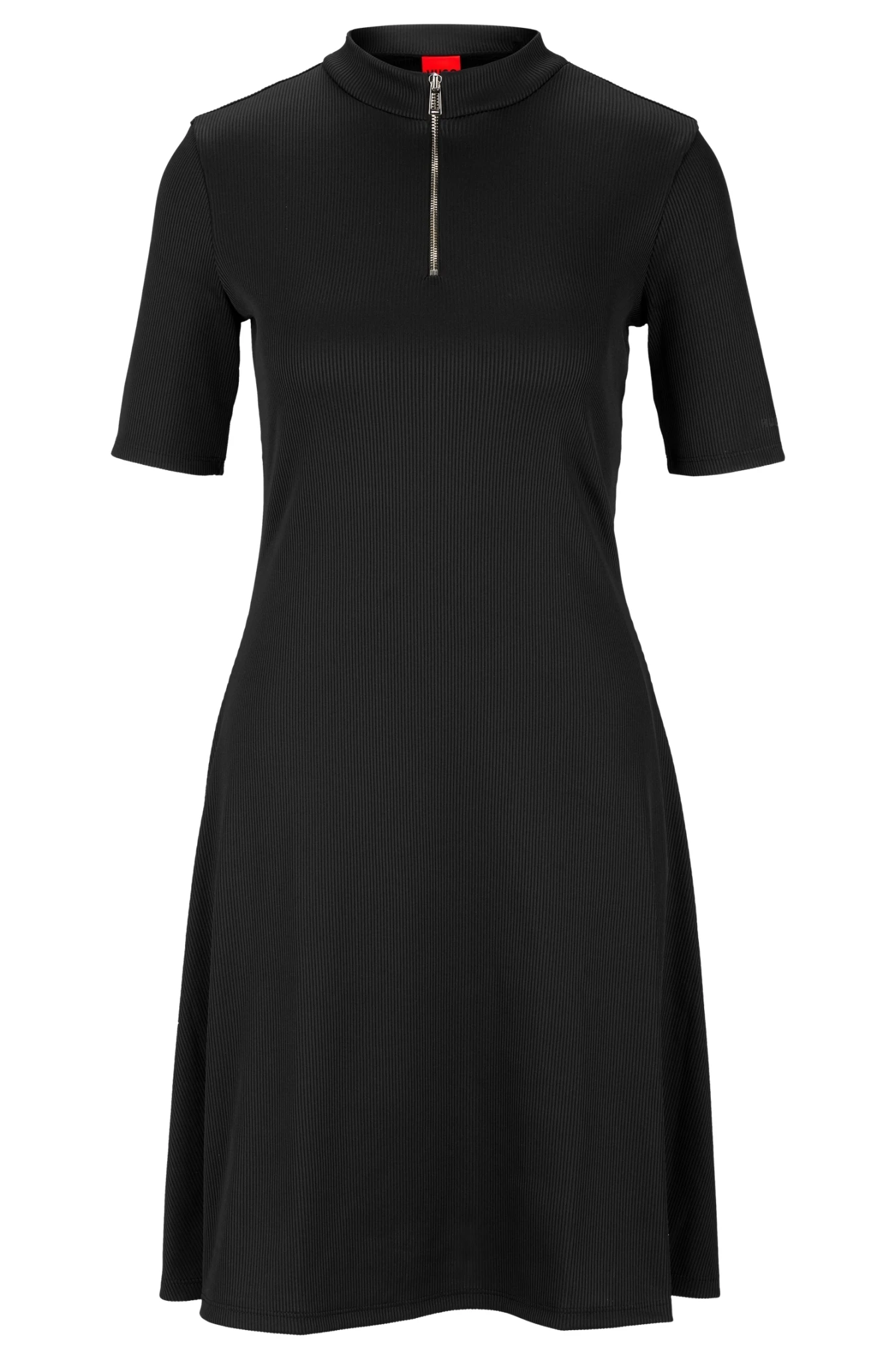 Gerade geschnittenes HUGO Kurzarm-Kleid aus geripptem Stretch-Jersey mit zeitgemäßem Reißverschluss am Ausschnitt.