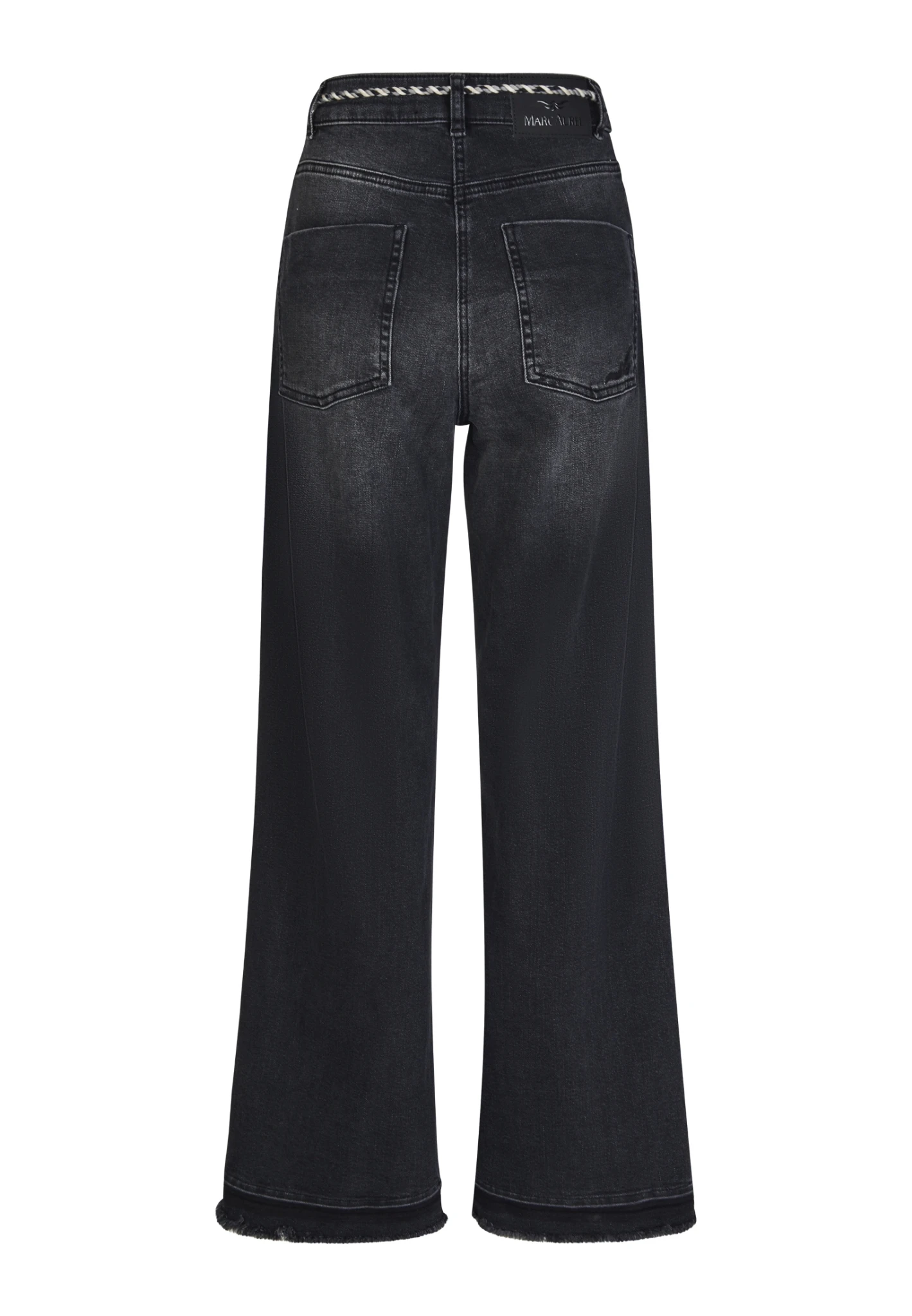 Die Jeans aus weichem, strapazierfähigem Black Denim Stoff fällt durch ihren modisch abgesetzten Saum und die abnehmbare Kordel auf. Das 5-Pocket-Modell mit weitem Bein weist einen lockeren Schnitt mit einer hohen Taille auf.