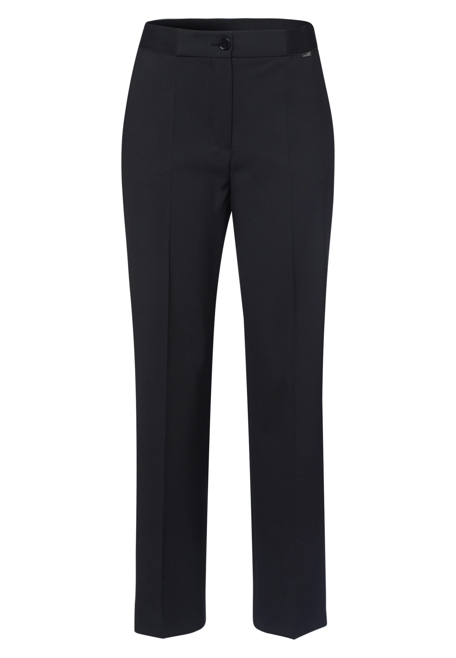 Stilsicher und komfortabel ins Büro: Die bequeme Variante der klassischen Businesshose kommt mit einem elastischen Bund. Elegante Bügelfalten vorne und hinten ergänzen das Design. In Kombination mit einer langen Bluse und Pumps wird der smarte Business-Look komplett.