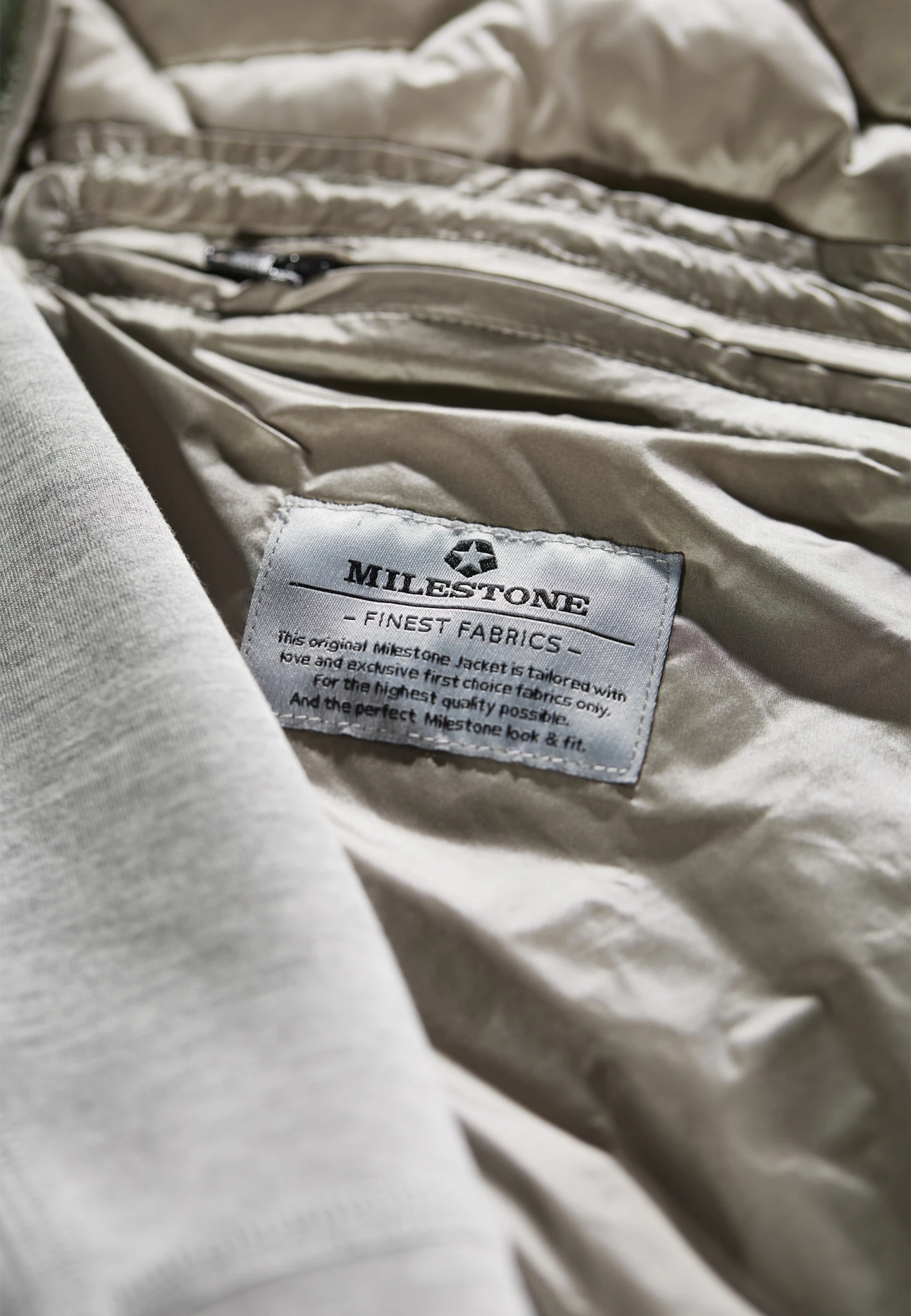 - Hochabschließender Kragen mit Dekorationsreißverschluss auf Rückseite
