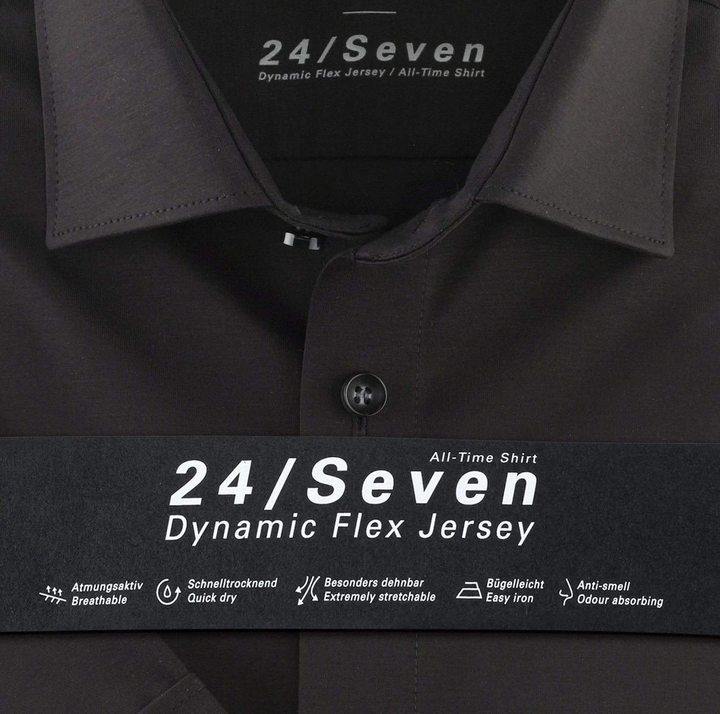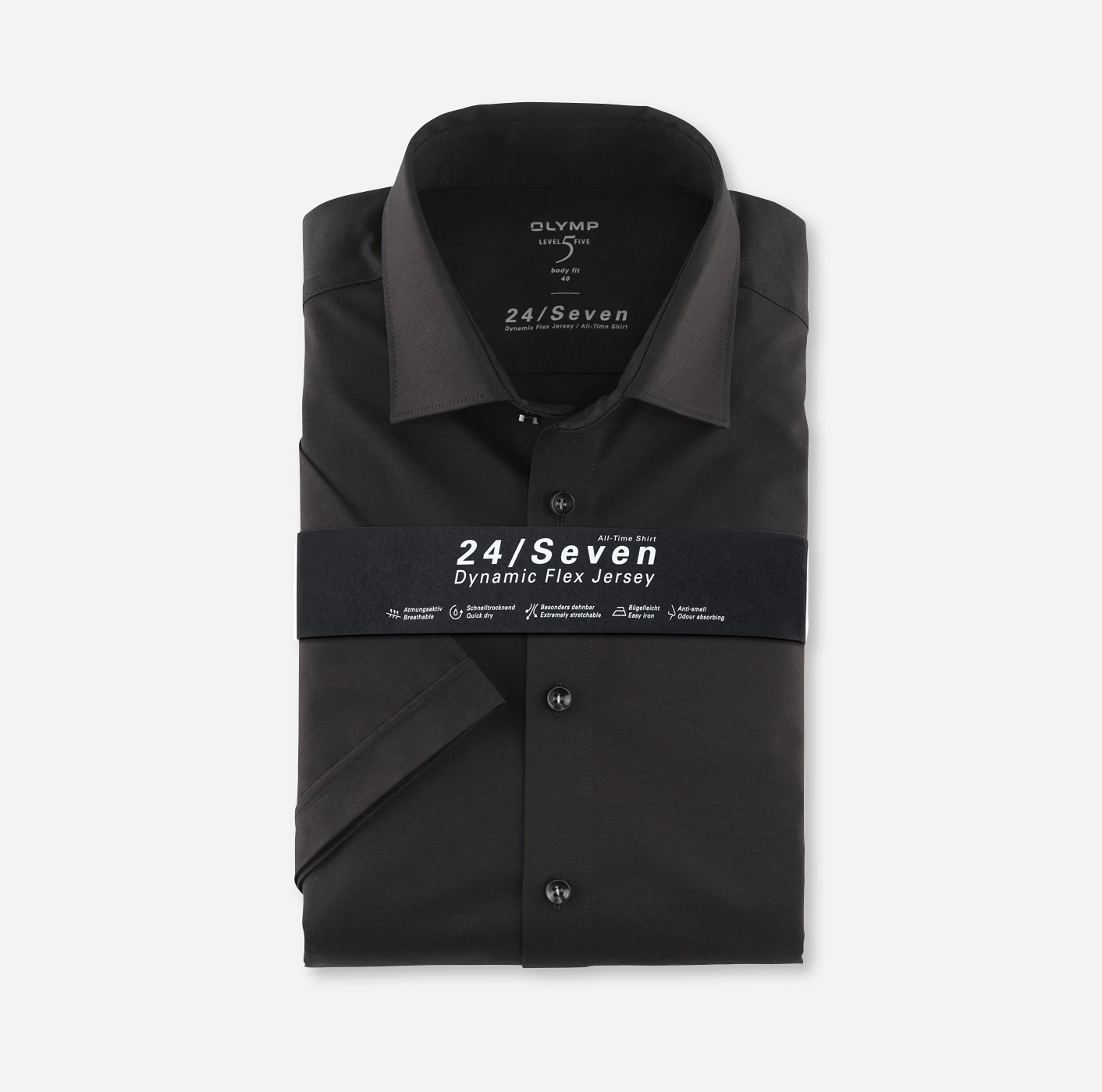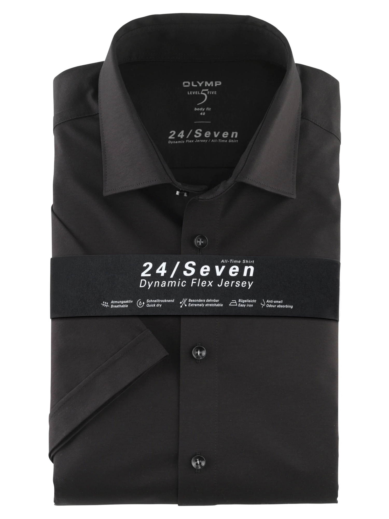 Ein echter Liebling moderner Business-Player präsentiert sich mit diesem kurzärmligen OLYMP Level Five 24/Seven All-Time-Shirt in schlichtem uni. Stilvoll, klassisch und unschlagbar bequem erlaubt es eine agile, energievolle Performance vom Jour fixe bis zum Sundowner – denn 24 Stunden sind kein Tag! Innovativer Flex-Jersey, etablierte Schnittmerkmale und ein modischer New York Kent formieren sich zu einem vielseitigen Allrounder für jedes Parkett, und das in nachhaltiger GREEN CHOICE Qualität. So geht Business heute.