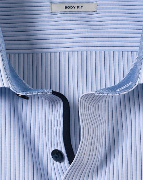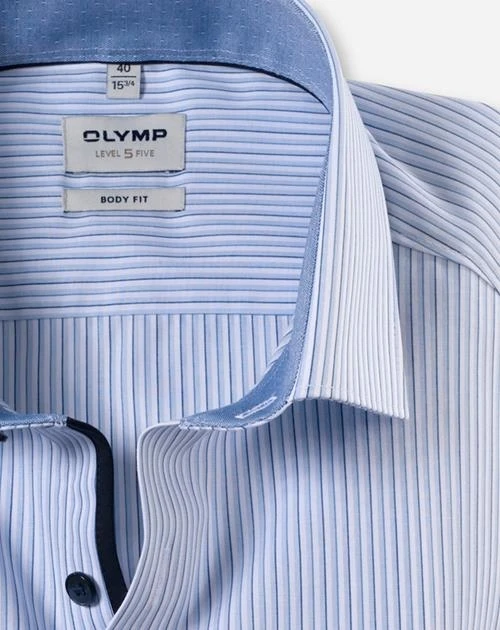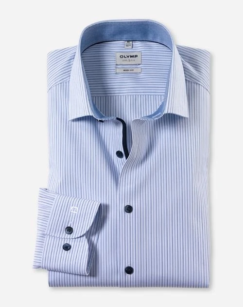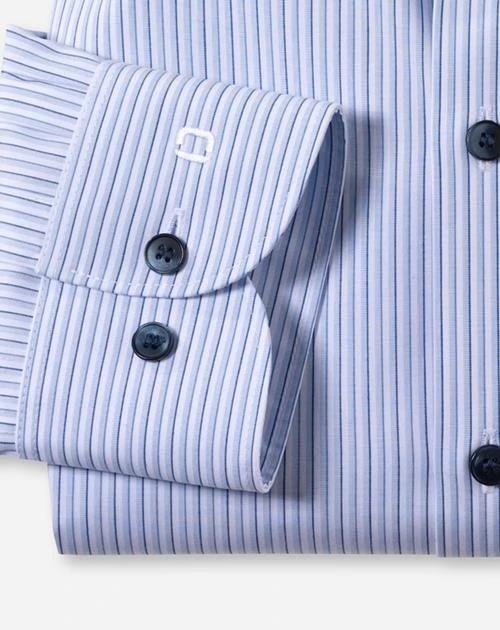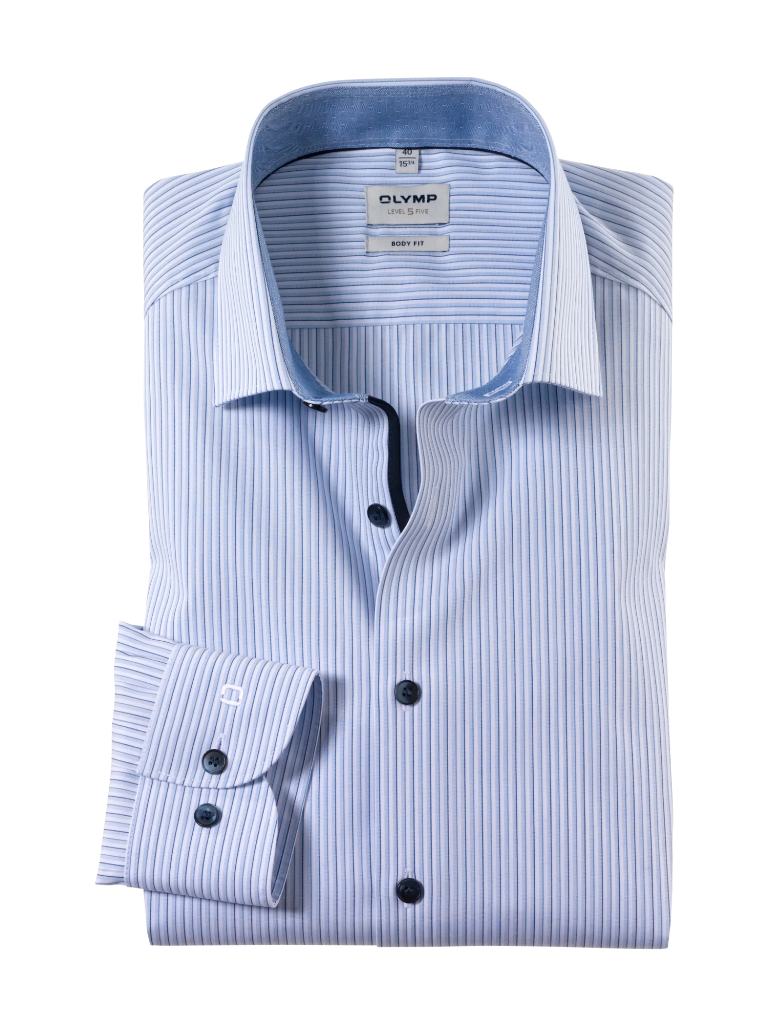 In unserer modernen Welt mit zunehmend fließenden Grenzen zwischen Arbeit und Freizeit erleben gestreifte Herrenhemden ein echtes Revival. Dank ihres breiten Einsatzspektrums bilden sie quasi die verkörperte Work-Life-Balance und meistern das Strategie-Meeting im Anzug ebenso souverän wie das relaxte Come-together nach Dienstschluss. Das neue OLYMP Level Five besticht durch frühlingshaft leichten Comfort Stretch in GREEN-CHOICE-Qualität, hier mit Webstreifen in Bleu und extra-langem Arm. Ein modischer Modern Kent rundet den Look harmonisch ab.