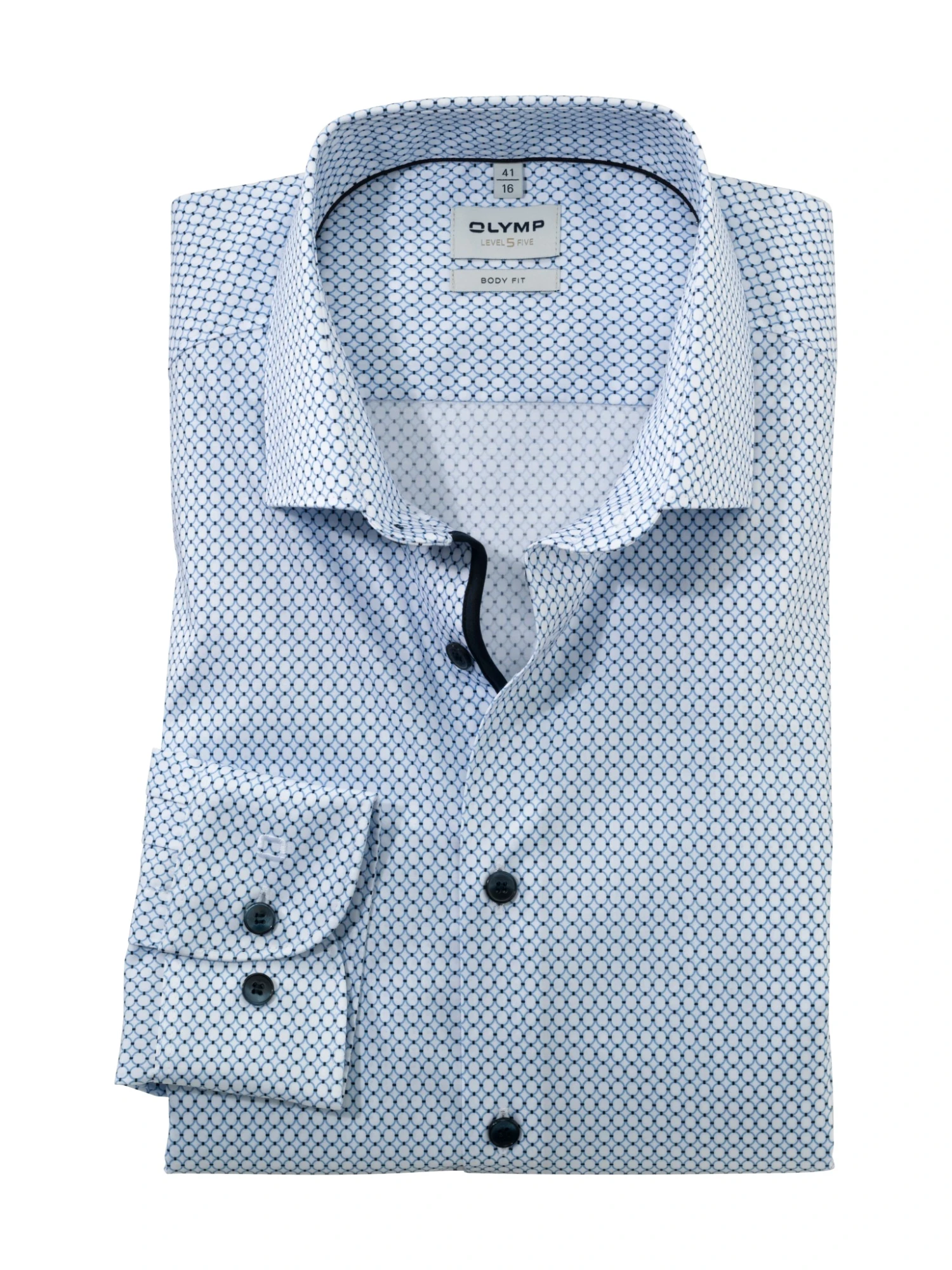 Der moderne Lifestyle bringt kreative Looks ins Geschäftsleben. Mit grafischem Print-Dessin in digitaler Pixelschärfe und innovativen Farbkompositionen präsentiert sich dieses OLYMP Level Five 24/Seven body fit. Die bewährten Trage- und Pflegevorteilen des Comfort-Stretch-Gewebes aus nachhaltiger Bio-Baumwolle und Elastolefin-Fasern überzeugen zeitsparend und sorgen ebenso für die attraktive Passform und den hautsympathischen Tragekomfort. Der smarte Modern Kent mit softer Krageneinlage punktet wie gewohnt angenehm und seriös. In der Passform mit etwas längerem Arm für den perfekten Manschettensitz.