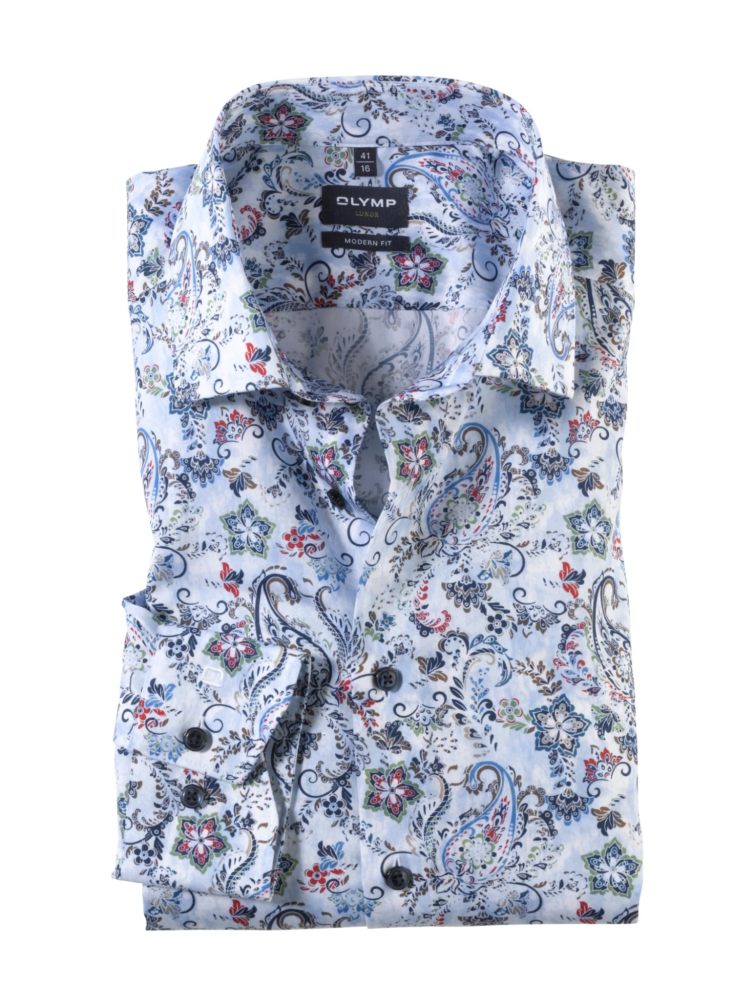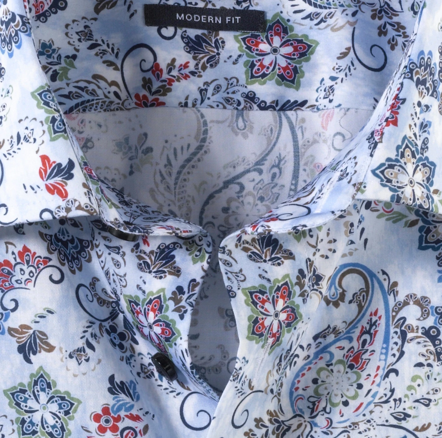 Der nachhaltige Auftritt im Büro oder beim Dinner gelingt perfekt in einem OLYMP Luxor modern fit, dass durch seine körpernahe Passform, den modischen Global Kent und ein unverwechselbares Print-Dessin für anerkennende Blicke sorgt. Die hautsympathische Faser aus ökologisch verarbeiteter Bio-Baumwolle garantiert ein angenehmes und hautsympathisches Tragegefühl und zeitsparende Pflegeleichtigkeit. Das Businesshemd für den kreativen Einsatz. Ohne Brusttasche.