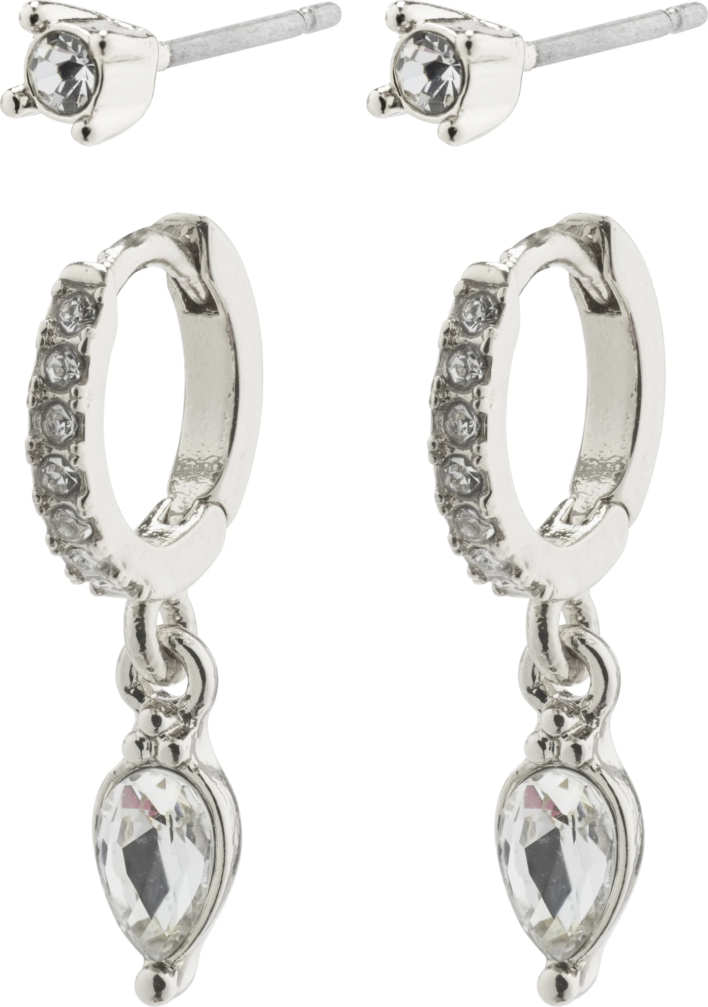 - Versilberte Ohrstecker und Creolen mit Kristall-Anhänger