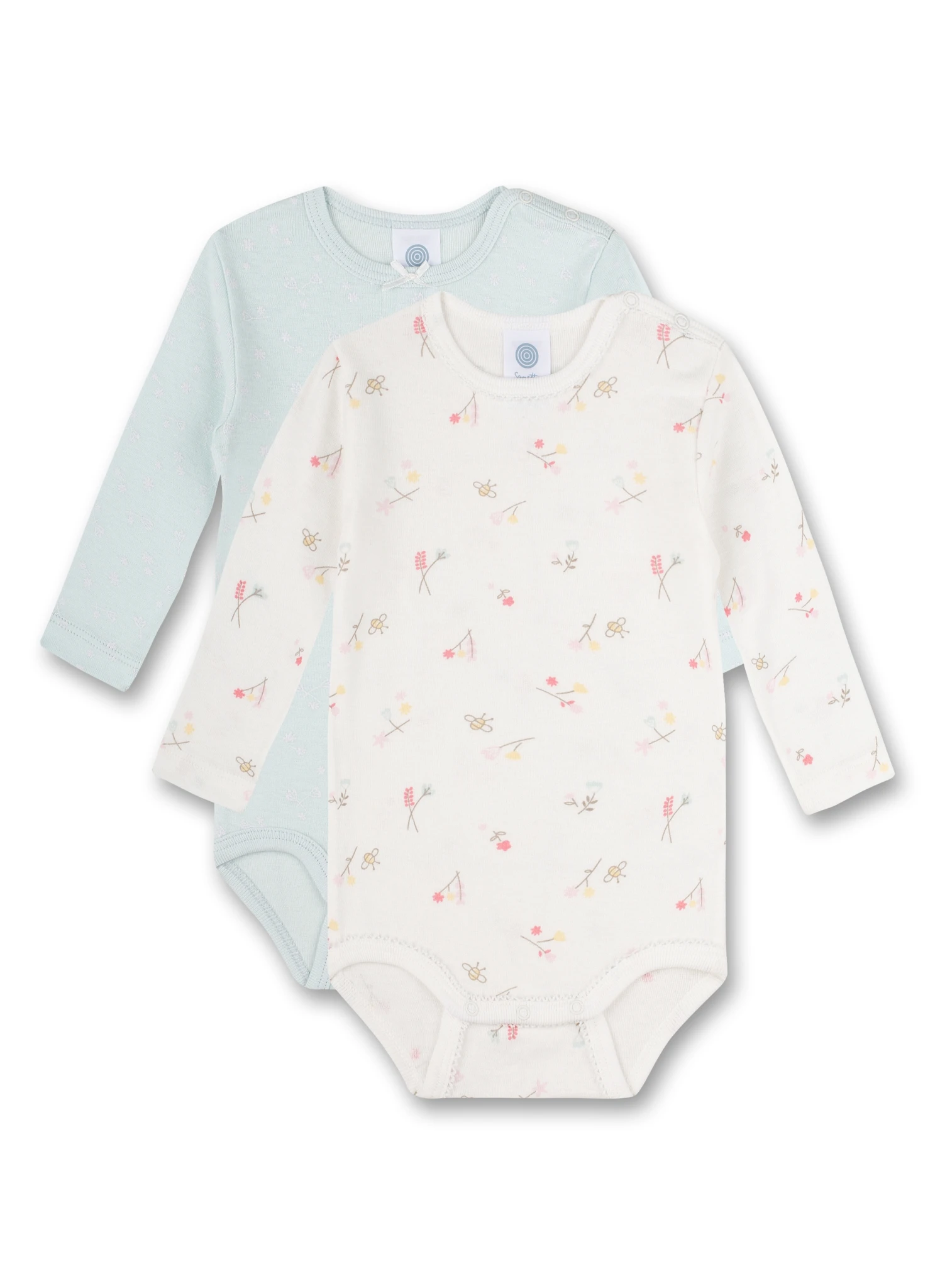 Body-Doppelpack mit langen Ärmeln in Off-White und Hellblau mit zartem Blüten-Alloverprint von Sanetta.