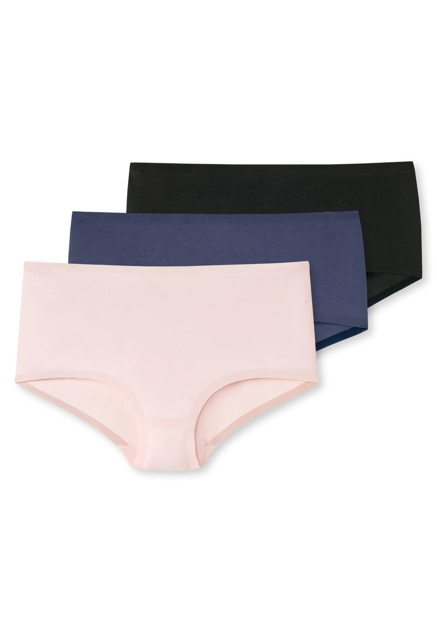 Diese bequemen Mädchen-Shorts kommen im praktischen Dreierpack! Der schlichte Look überzeugt hierbei in tollen Farbkombinationen und ist selbst unter enganliegender Kleidung nahezu unsichtbar. Für einen hohen Tragekomfort sorgt der super-elastische Single Jersey, der sich wie eine zweite Haut anfühlt und jede Bewegung spielend leicht mitmacht. Ein trendy Wäsche-Trio in bester SCHIESSER-Qualität.