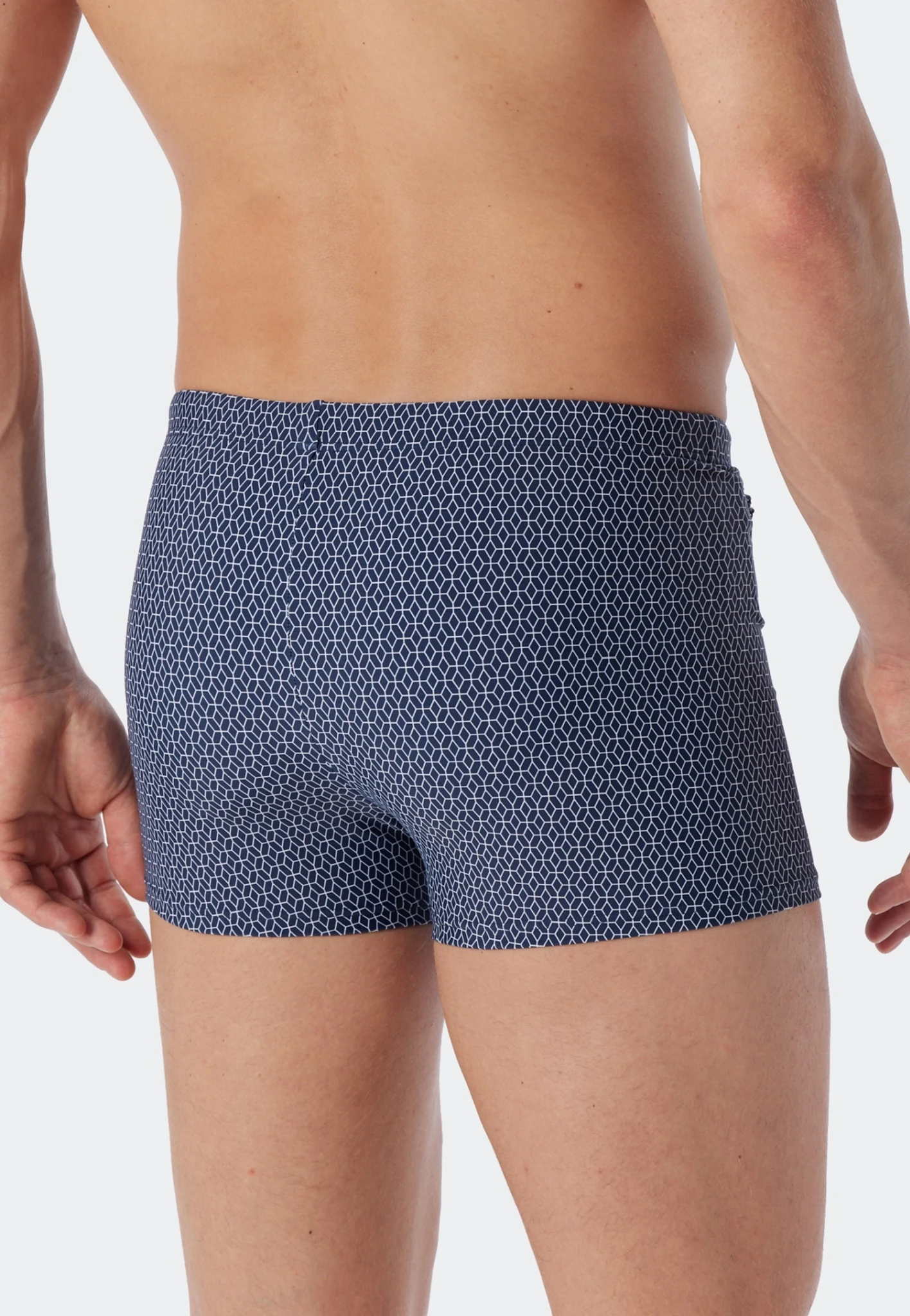 - eng angliegende Bade-Retroshorts für Herren mit rotem Grafik-Muster auf Dunkelblau aus der SCHIESSER-Badekollektion Aqua Marineland