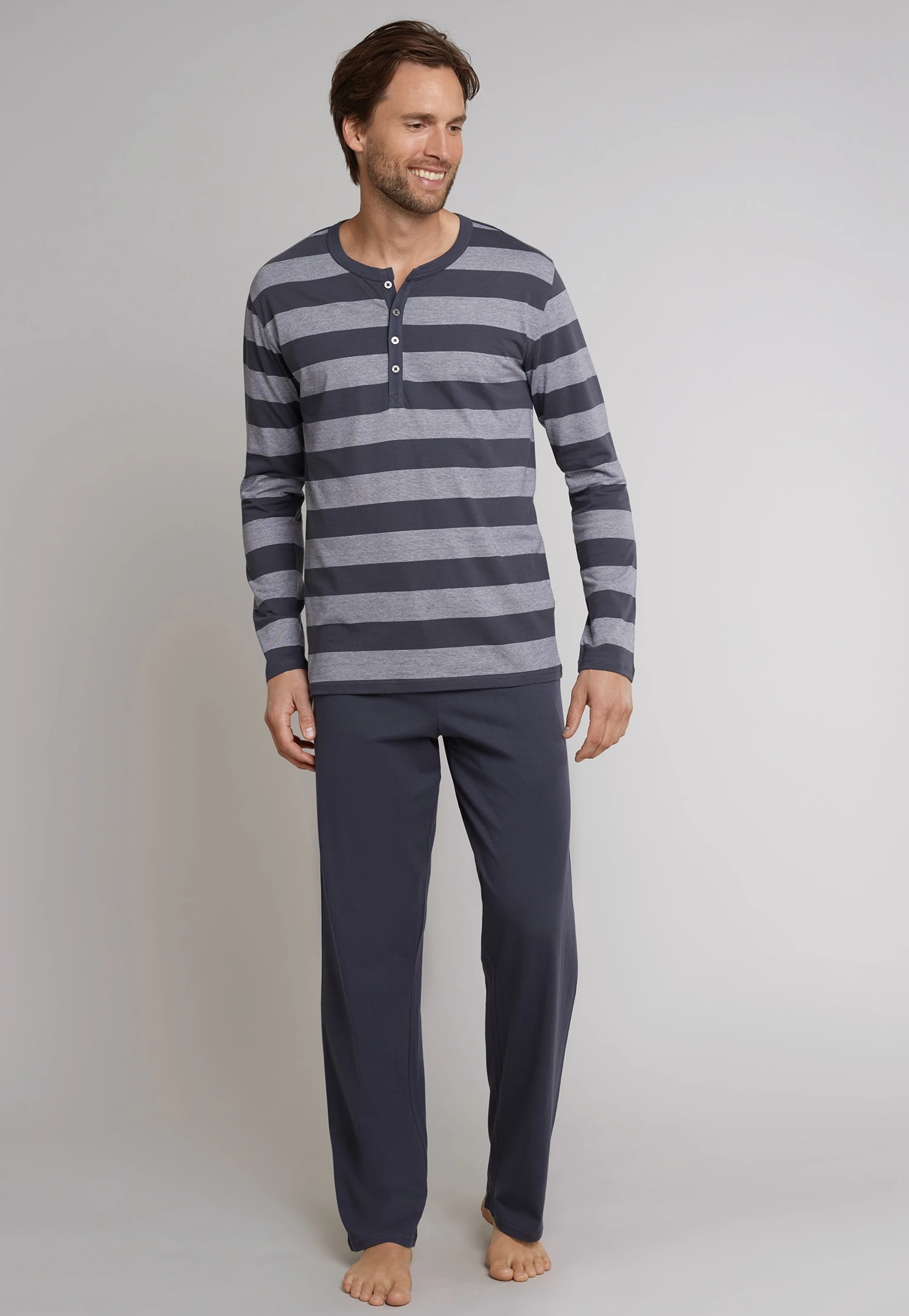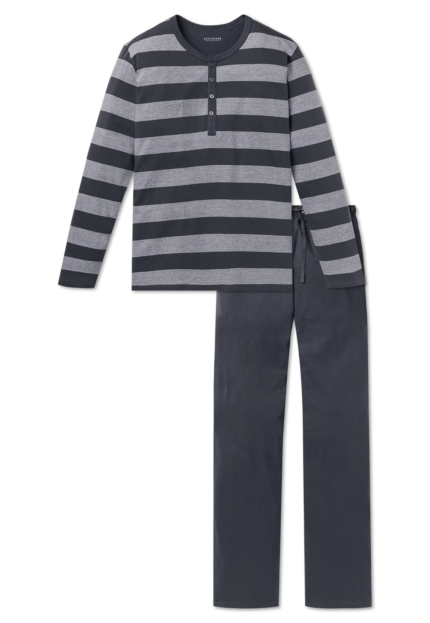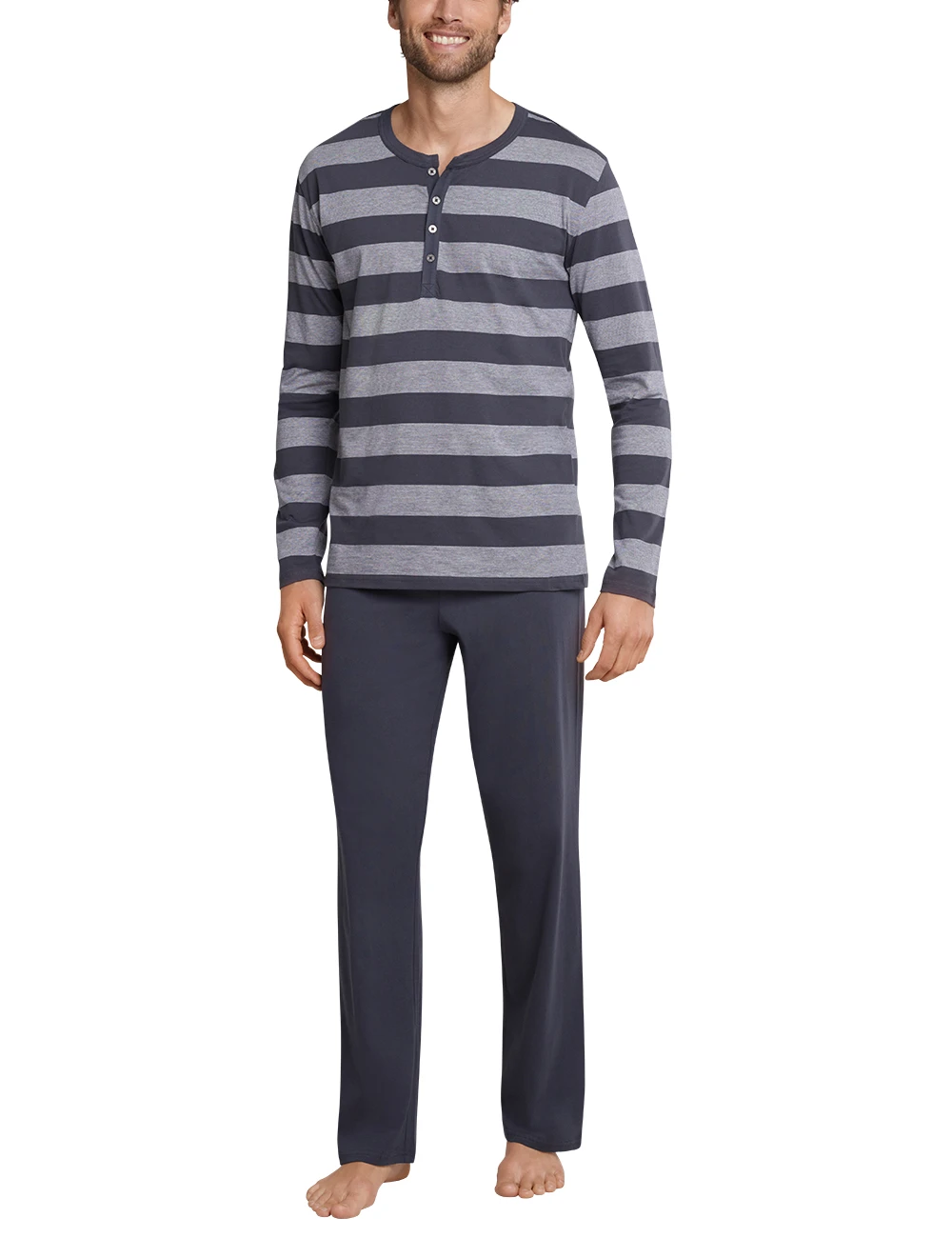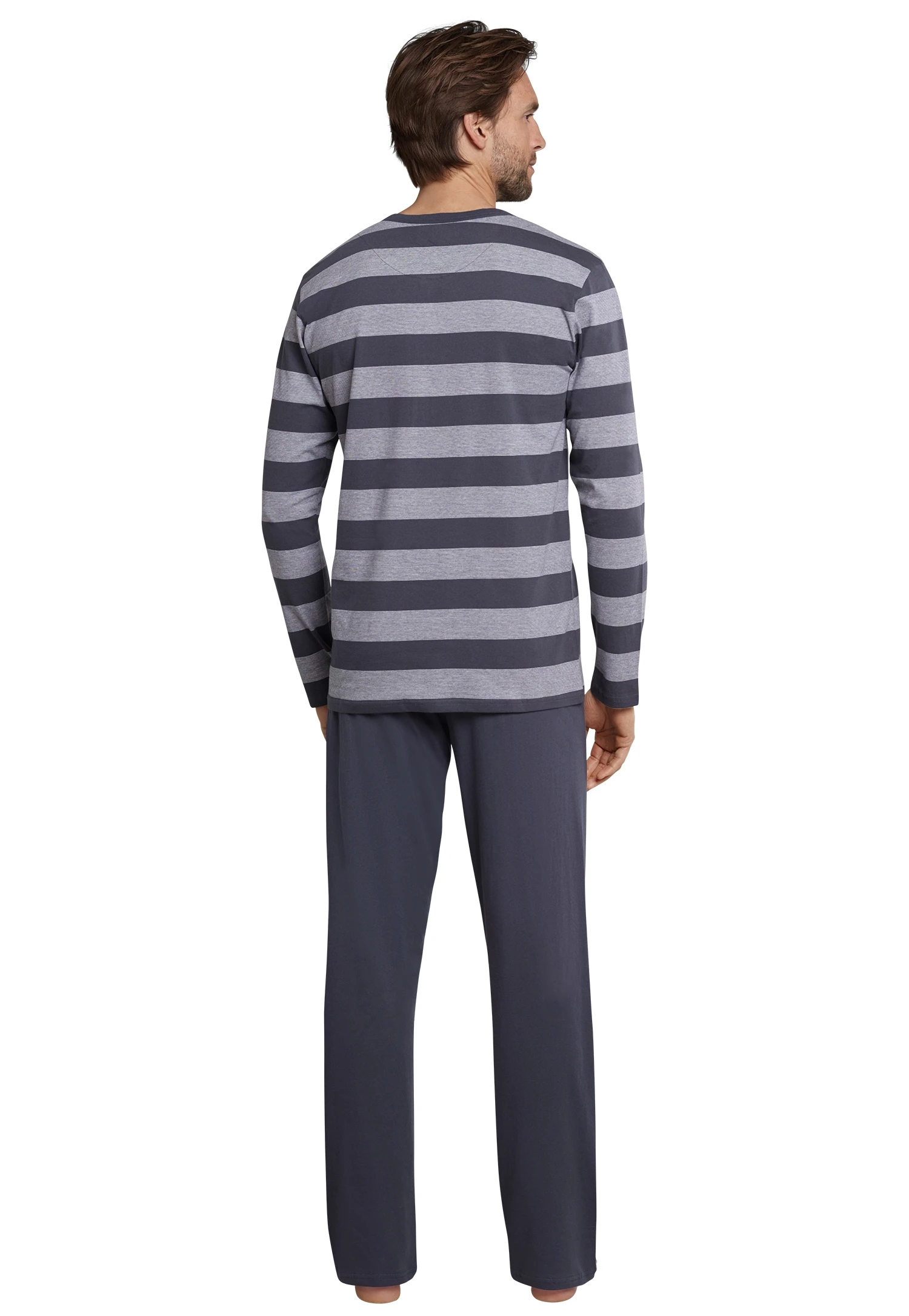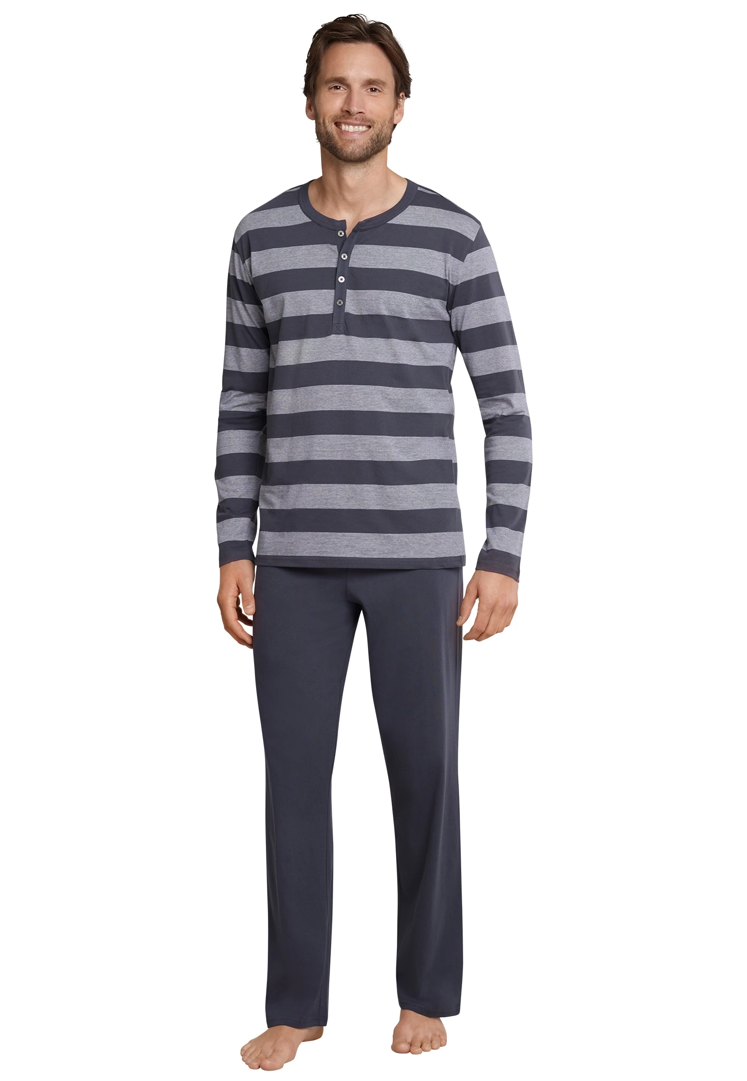 Langer Schlafanzug für Herren, aus der SCHIESSER-Serie „Ebony“. Ein Schlafanzug mit sportlichem Look für entspannte Nächte.