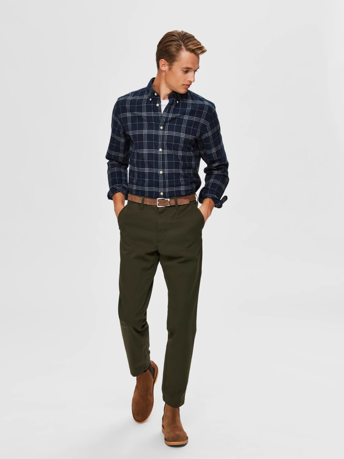 Diese Herrenhose von SELECTED HOMME aus Bio-Baumwolle verleiht deinem Outfit den angesagten lässigen Touch. Ihre besonderen Features sind der Taschenmix, die Straight Fit Passform und der Stretchanteil für mehr Flexibilität. In Kombination mit bedruckten Hemden entsteht daraus ein lässiger, modischer Look.