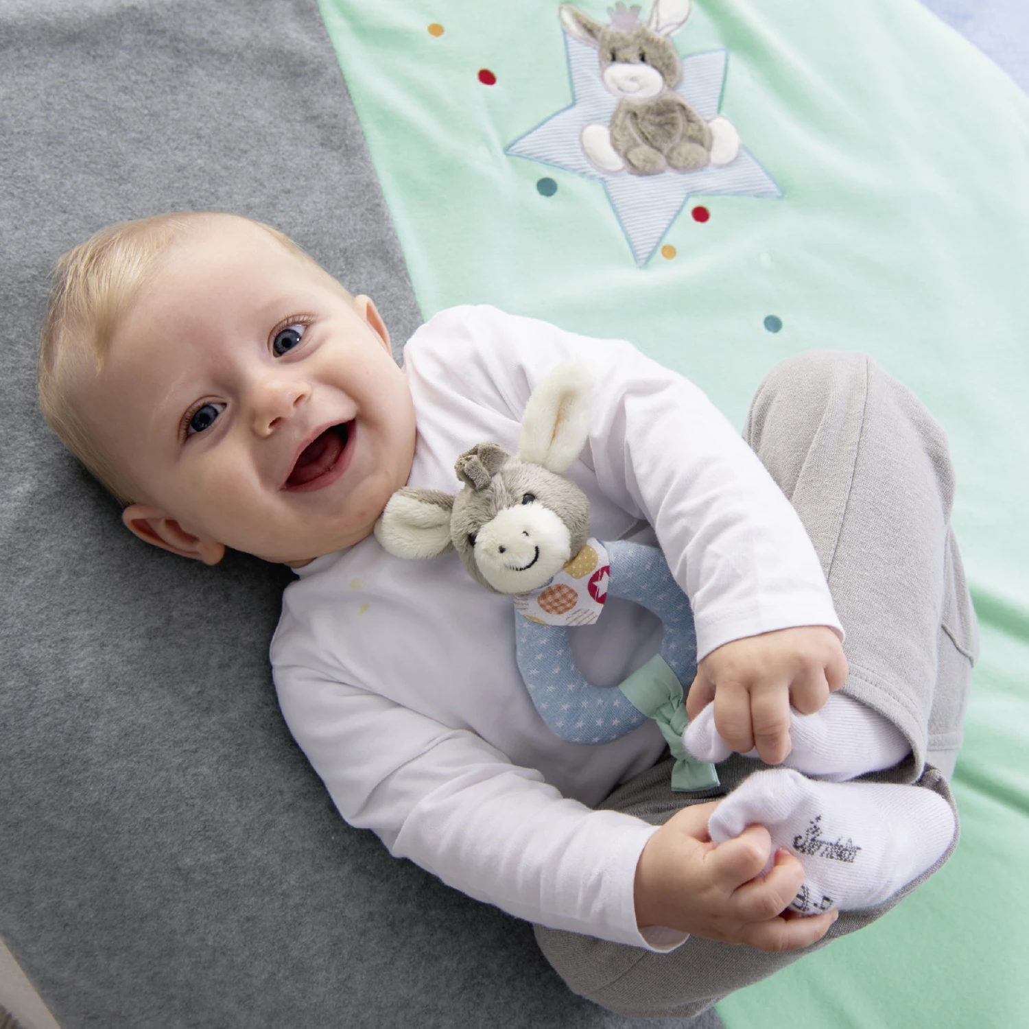 Der Greifling ist ein tolles Geschenk zur Geburt. Er hat eine tolle Haptik und lässt sich schon von Babyhändchen prima greifen. Er fördert den Tastsinn des Kindes auf Grund der vielen kleinen Details und verschiedenen Stoffstrukturen.