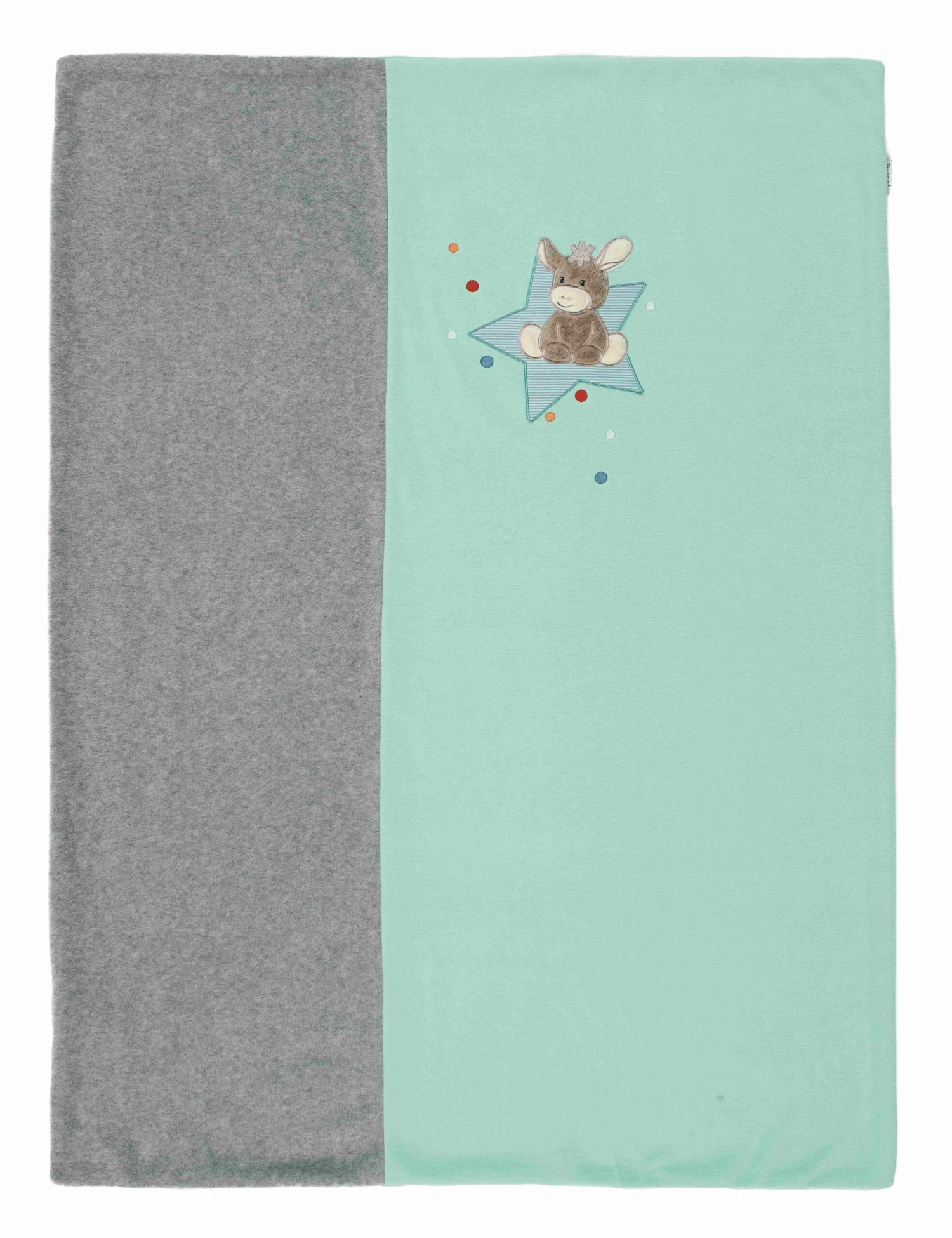 Ein tolles Geschenk zur Geburt. Auf dem kuschlig, weichen Microfleece wird sich das Baby rundherum wohlfühlen. Die Decke dient als Unterlage zum Spielen, Entspannen, zum Kuscheln oder als leichte Zudecke.