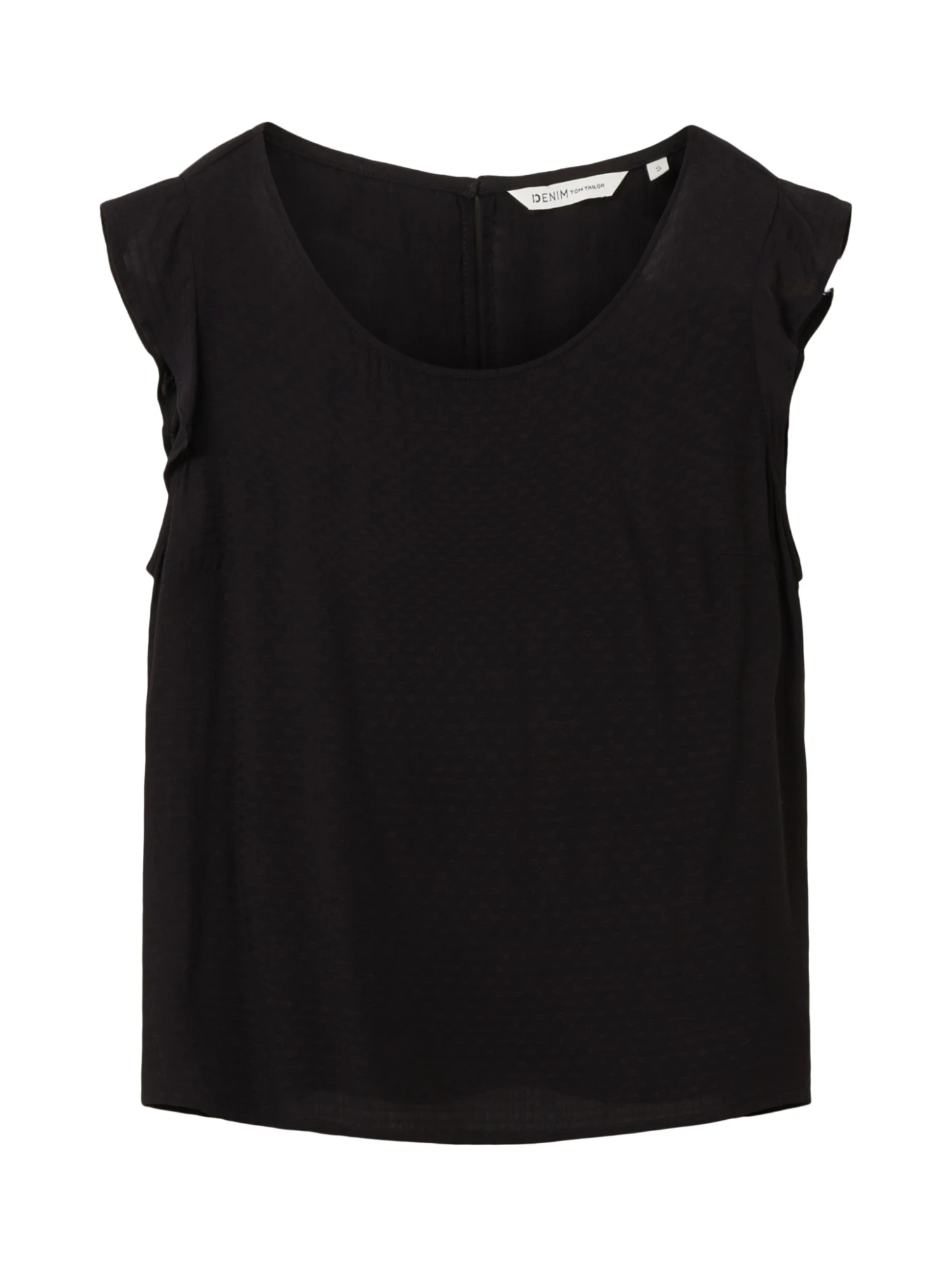 Blusentop im Regular Fit aus fließender Viskose mit Rundhalsausschnitt und Rüschen am Ärmelsaum.
