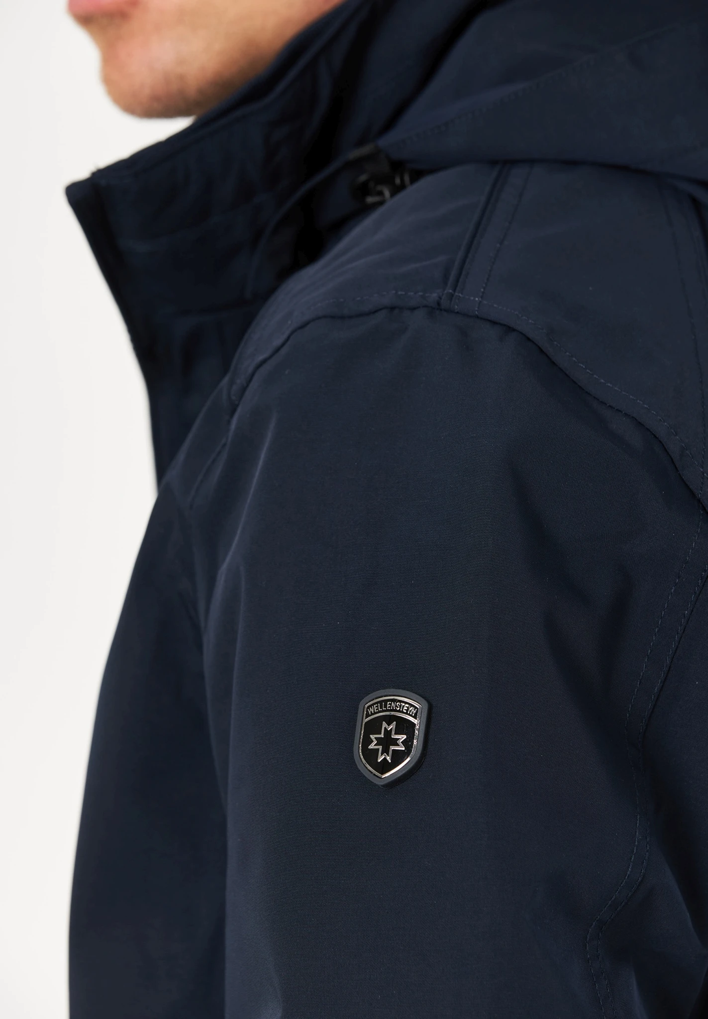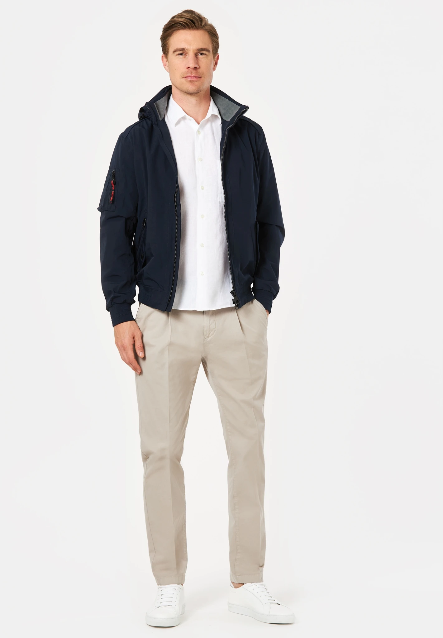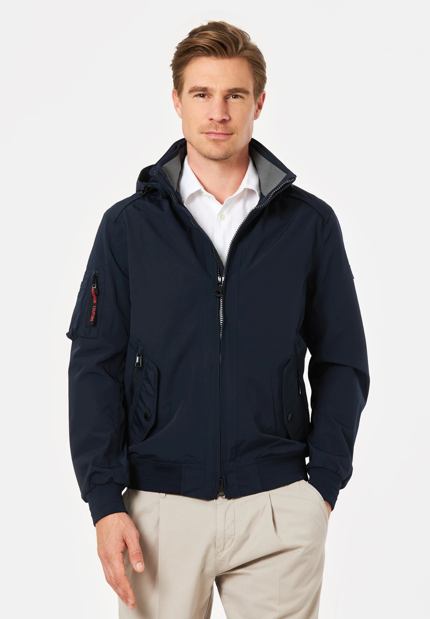 - Mit abnehmbarer Kapuze, die über einen Klettverschluss und Tunnelzug individuell in der Weite reguliert werden kann